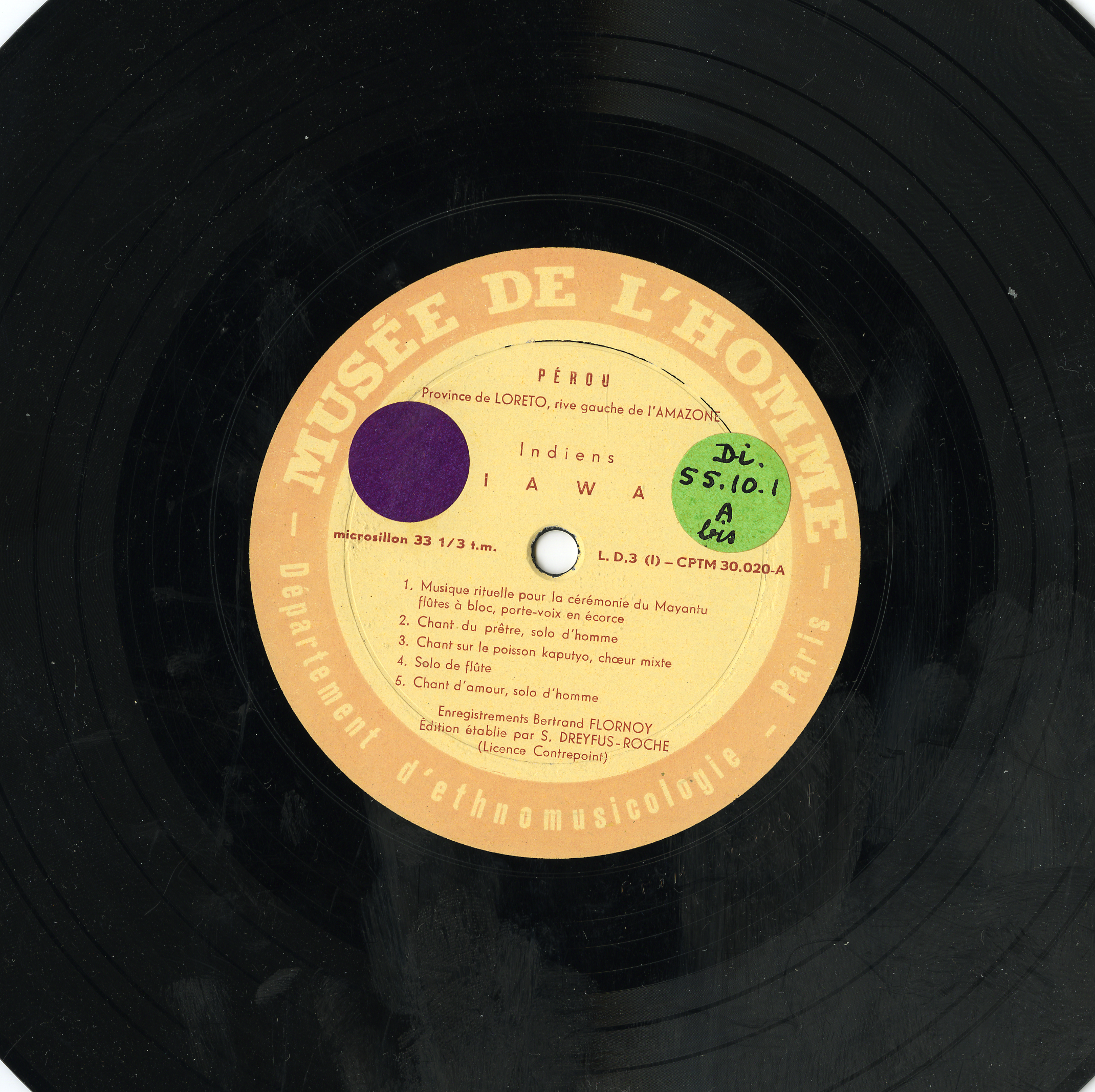 - Sélection et montage de Simone Dreyfus-Roche. Ce disque a été publié par les Éditions du Musée de l'Homme, licence Contrepoint. Puis a été réédité par Contrepoint sous la Réf. : MC-20096.