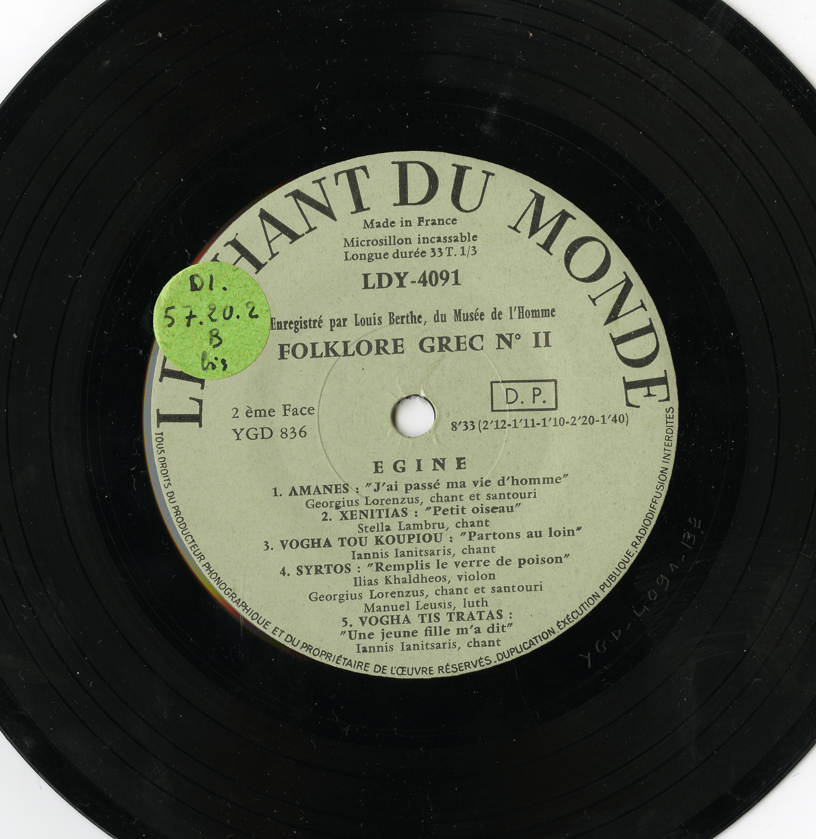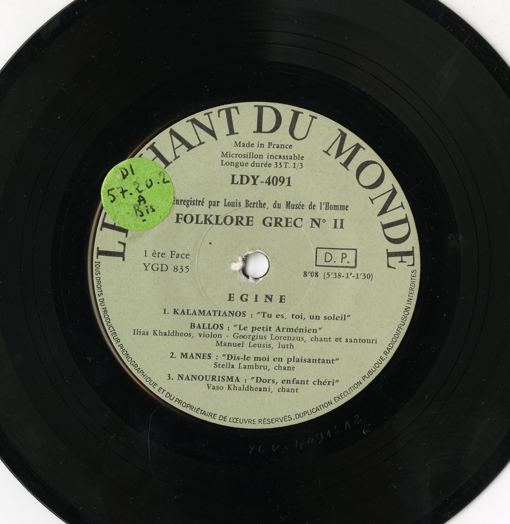 - Enregistrements sonores édités de Louis Berthe sur le folklore grec "Egine" en 1956