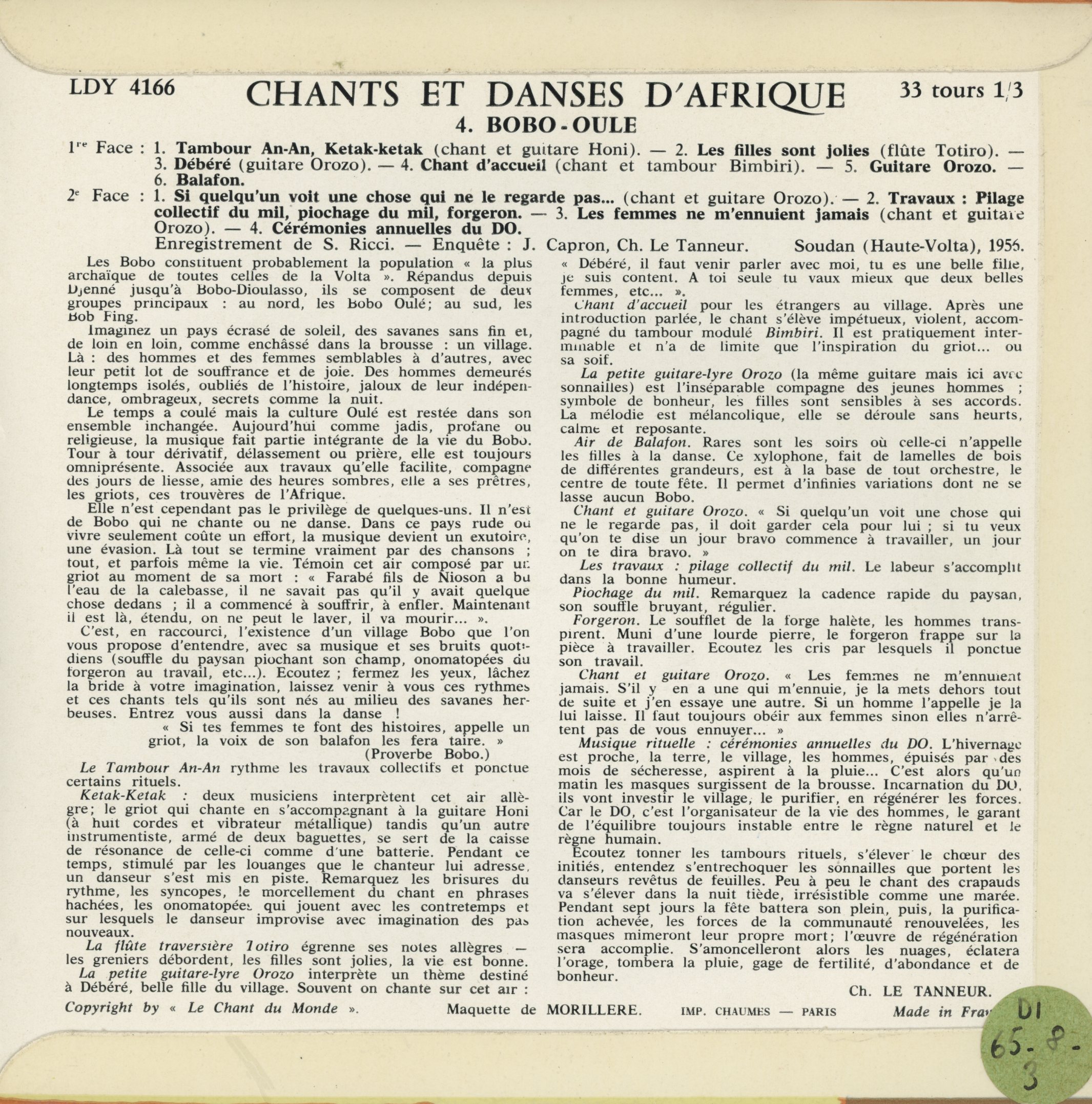Ricci, S. | Burkina Faso | 1956 | CNRSMH_E_1965_008_003_001 |