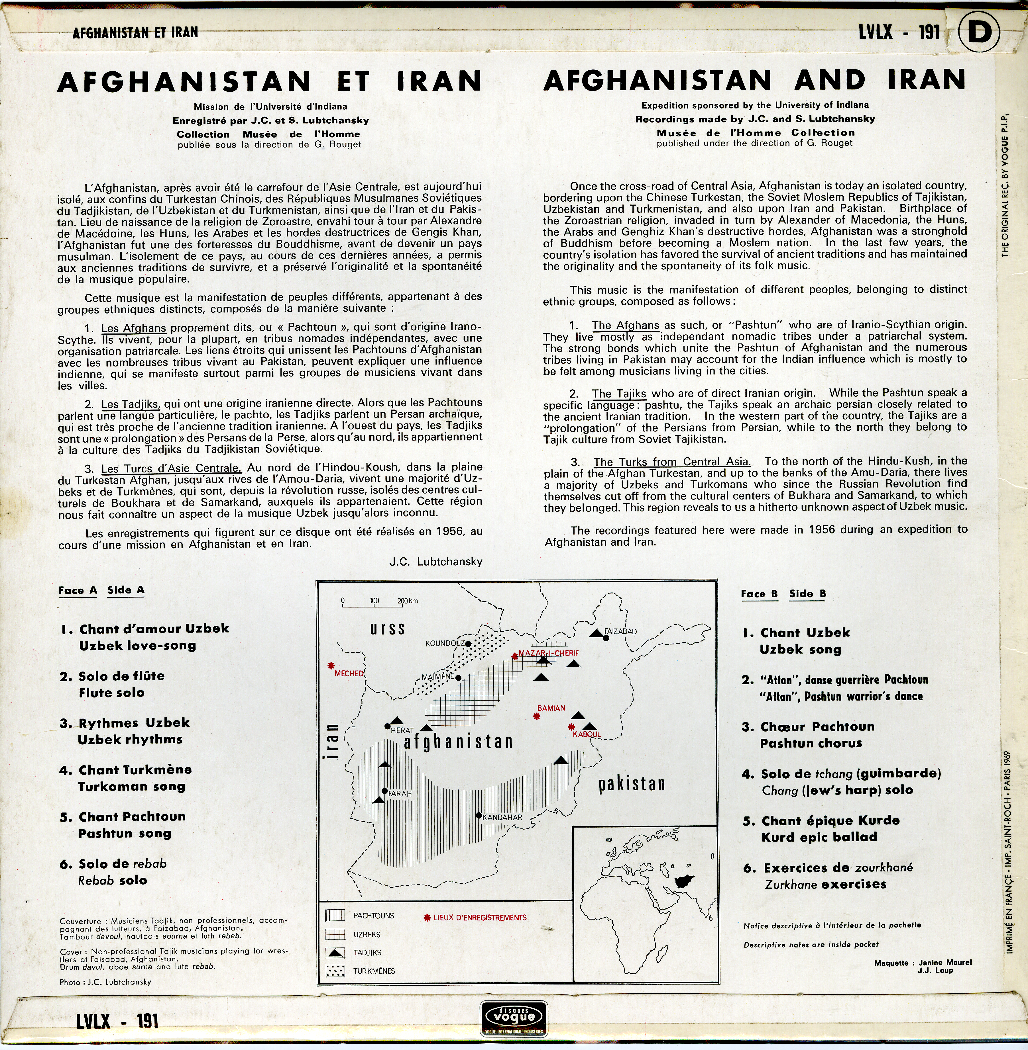 - Enregistrements sonores édités de Lubtchansky sur l'Afghanistan et l'Iran en 1956