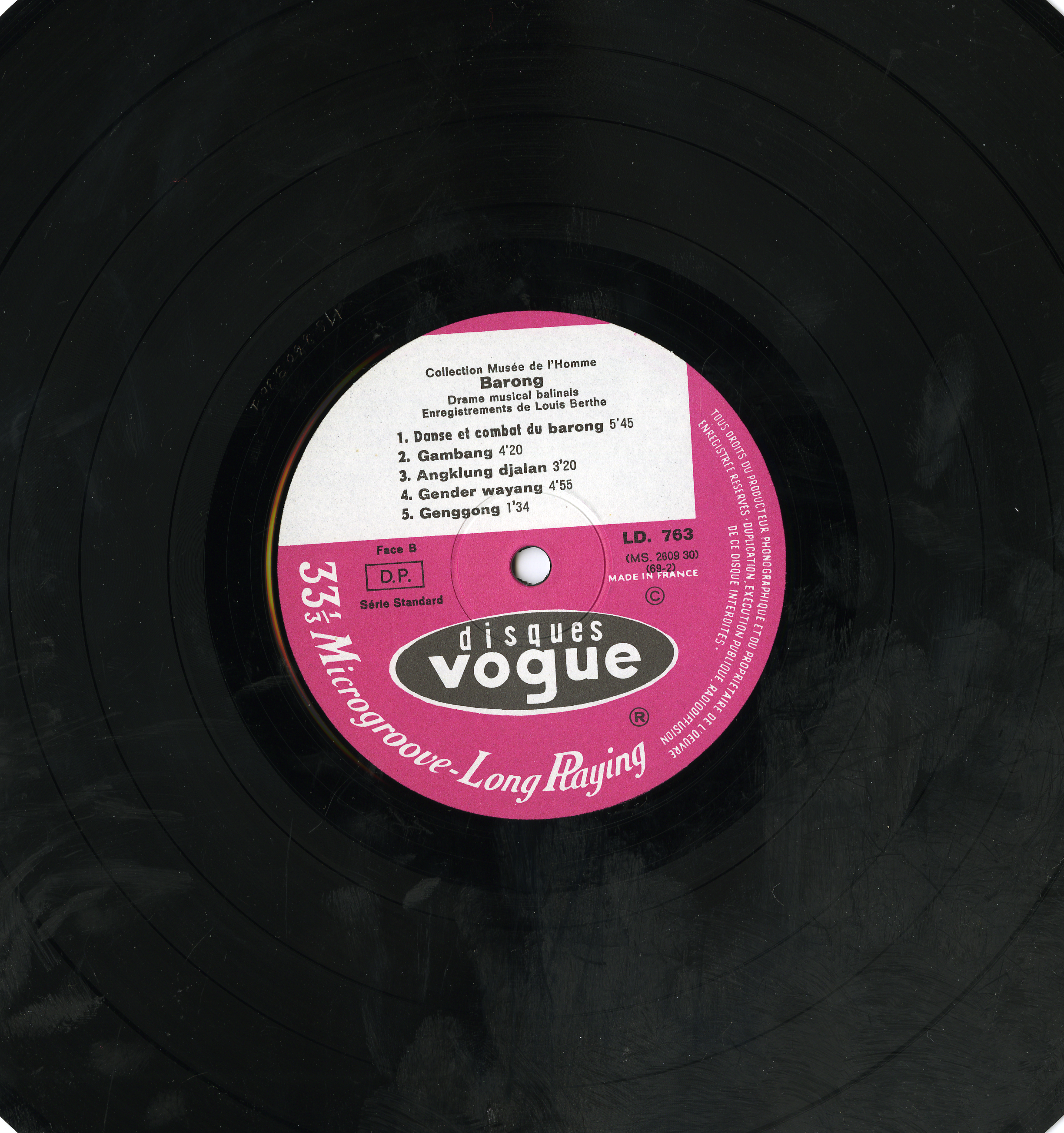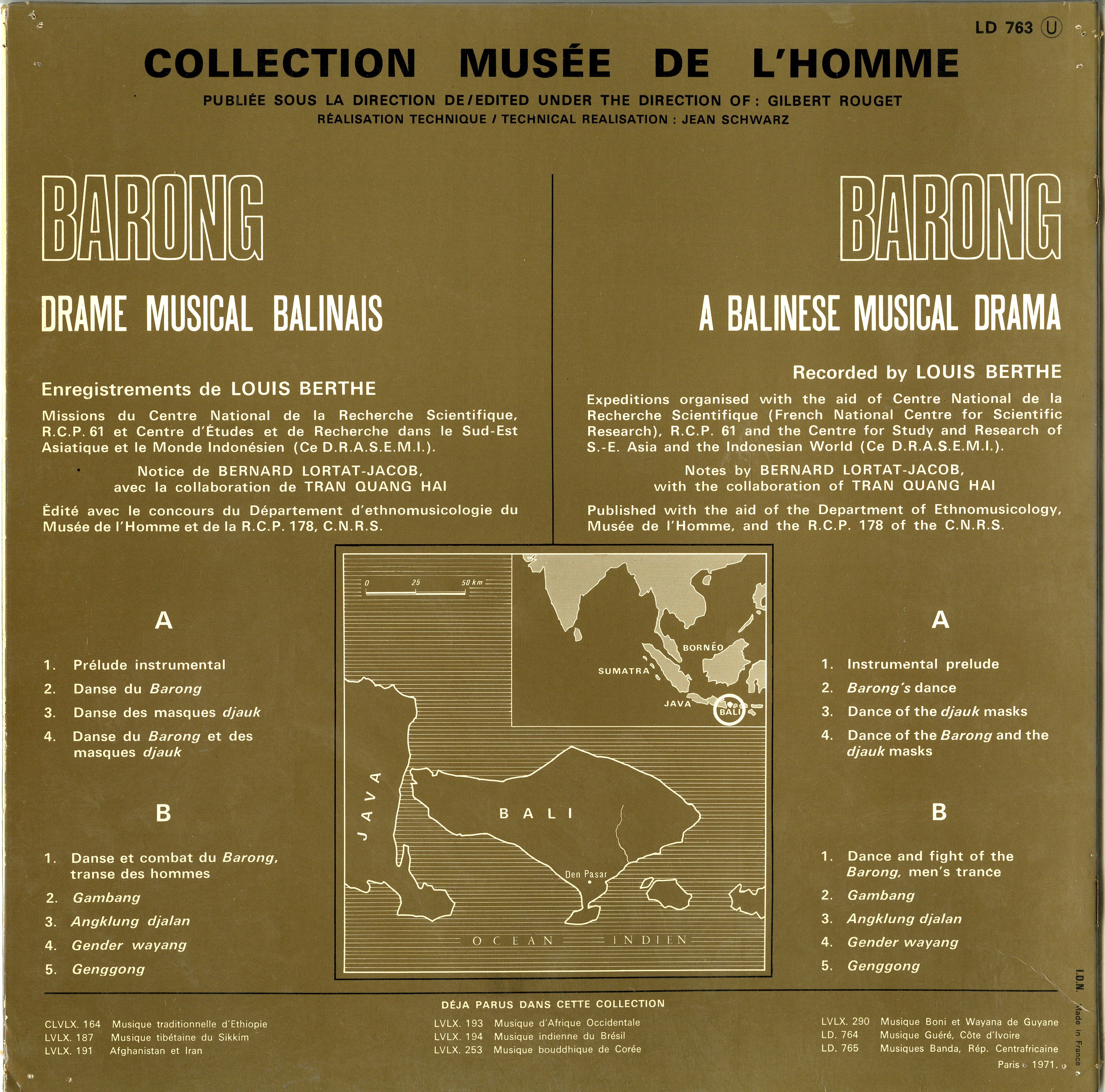 - Enregistrements sonores édités de Louis Berthe sur "Barong" un drame musical Balinais de 1962