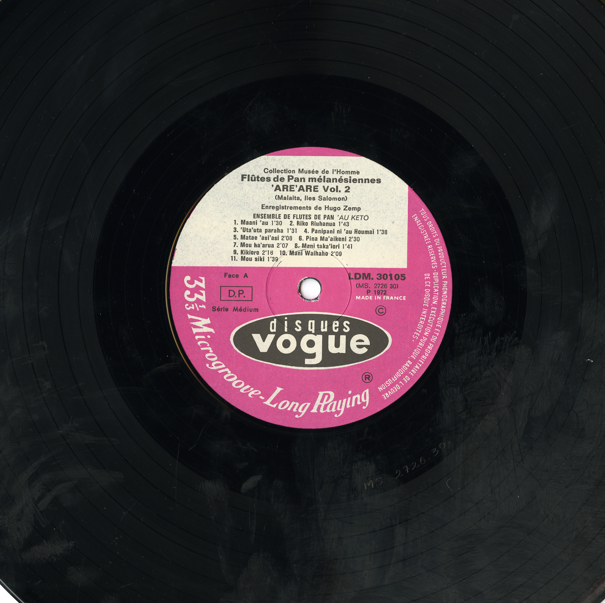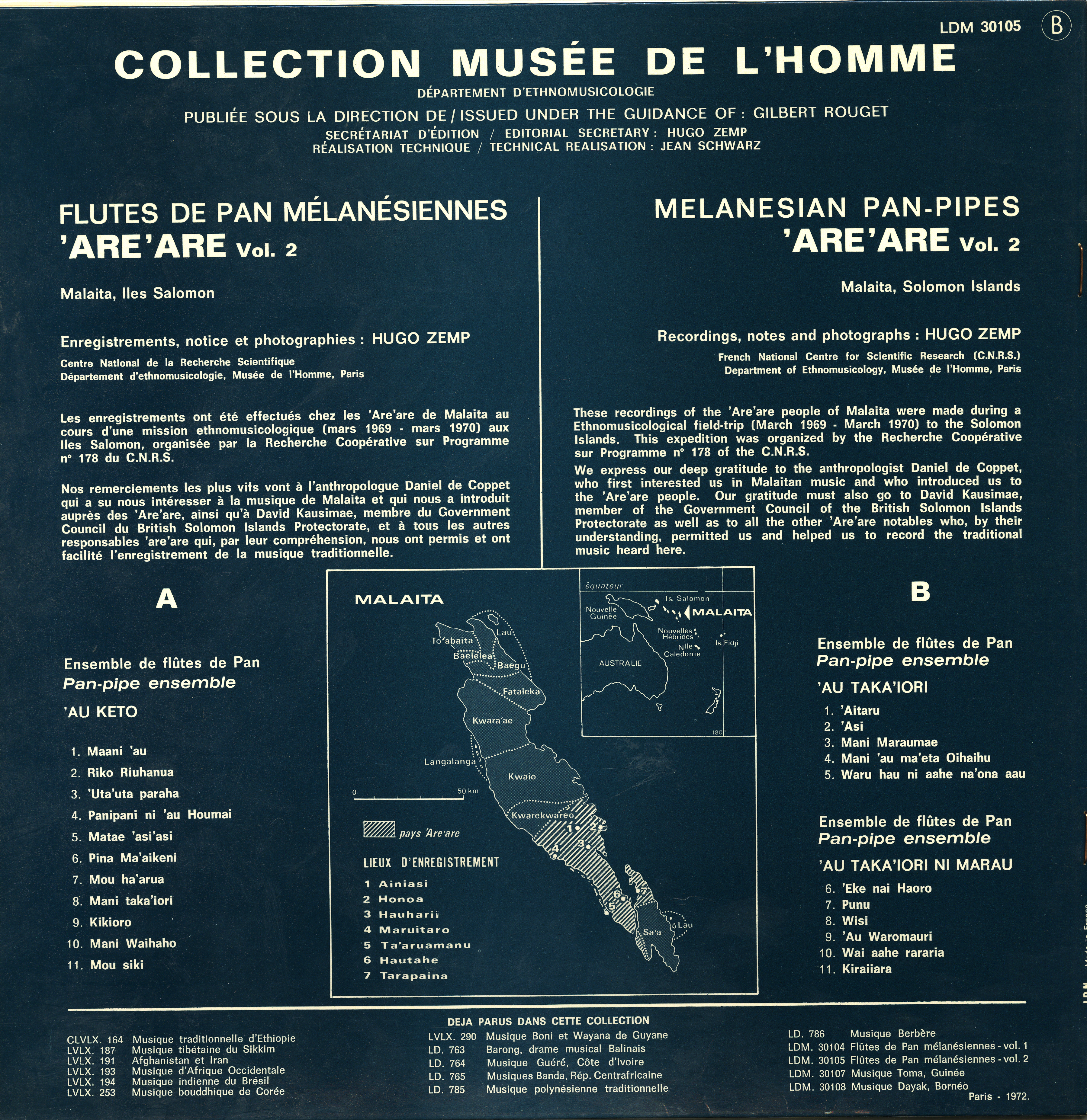 - Enregistrements sonores édités de Hugo Zemp sur les flûtes de pan mélanésiennes are are lors d'un terrain en 1969