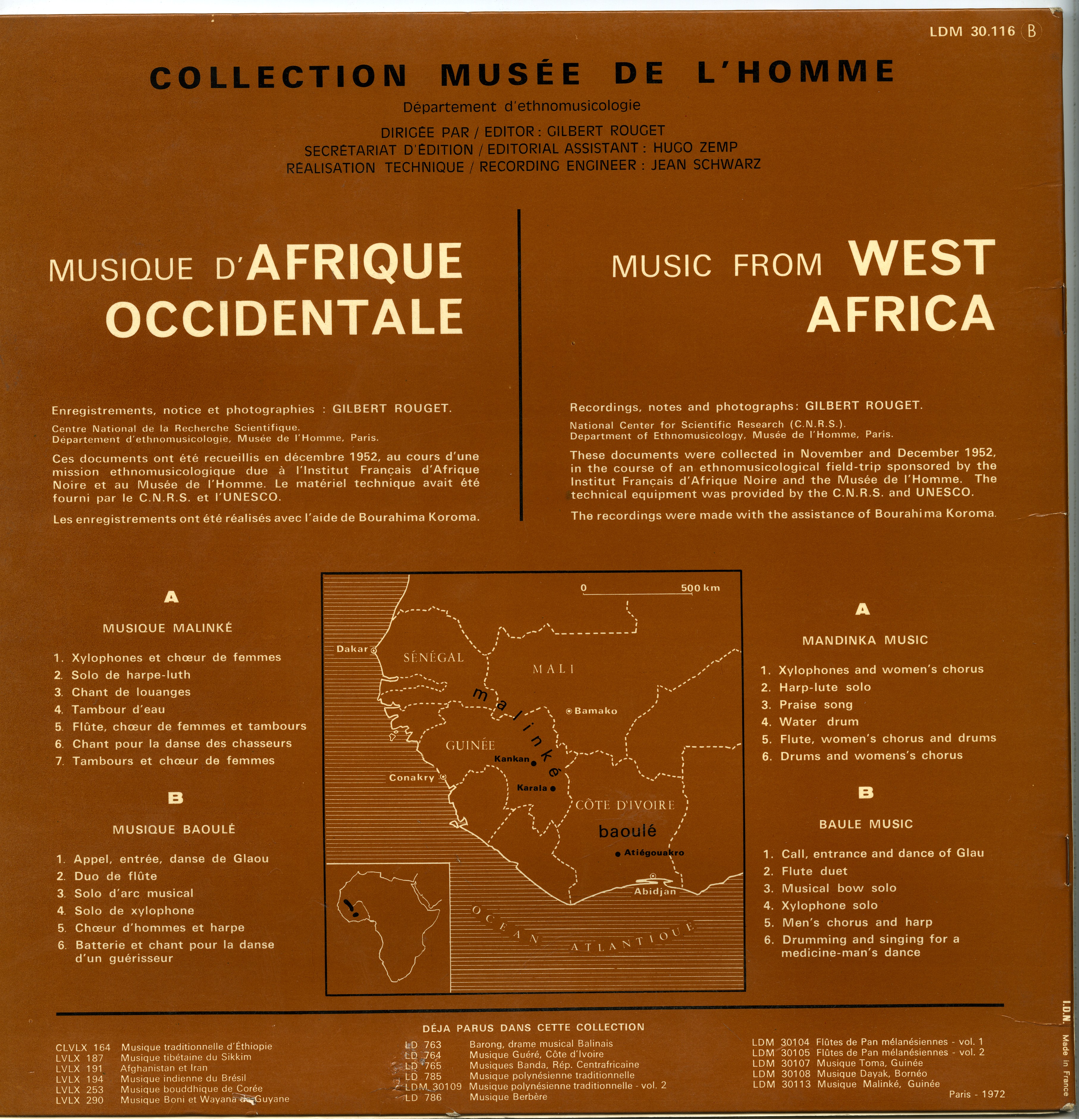 - Enregistrements sonores édités de Gilbert Rouget sur la musique d'Afrique occidentale en 1952