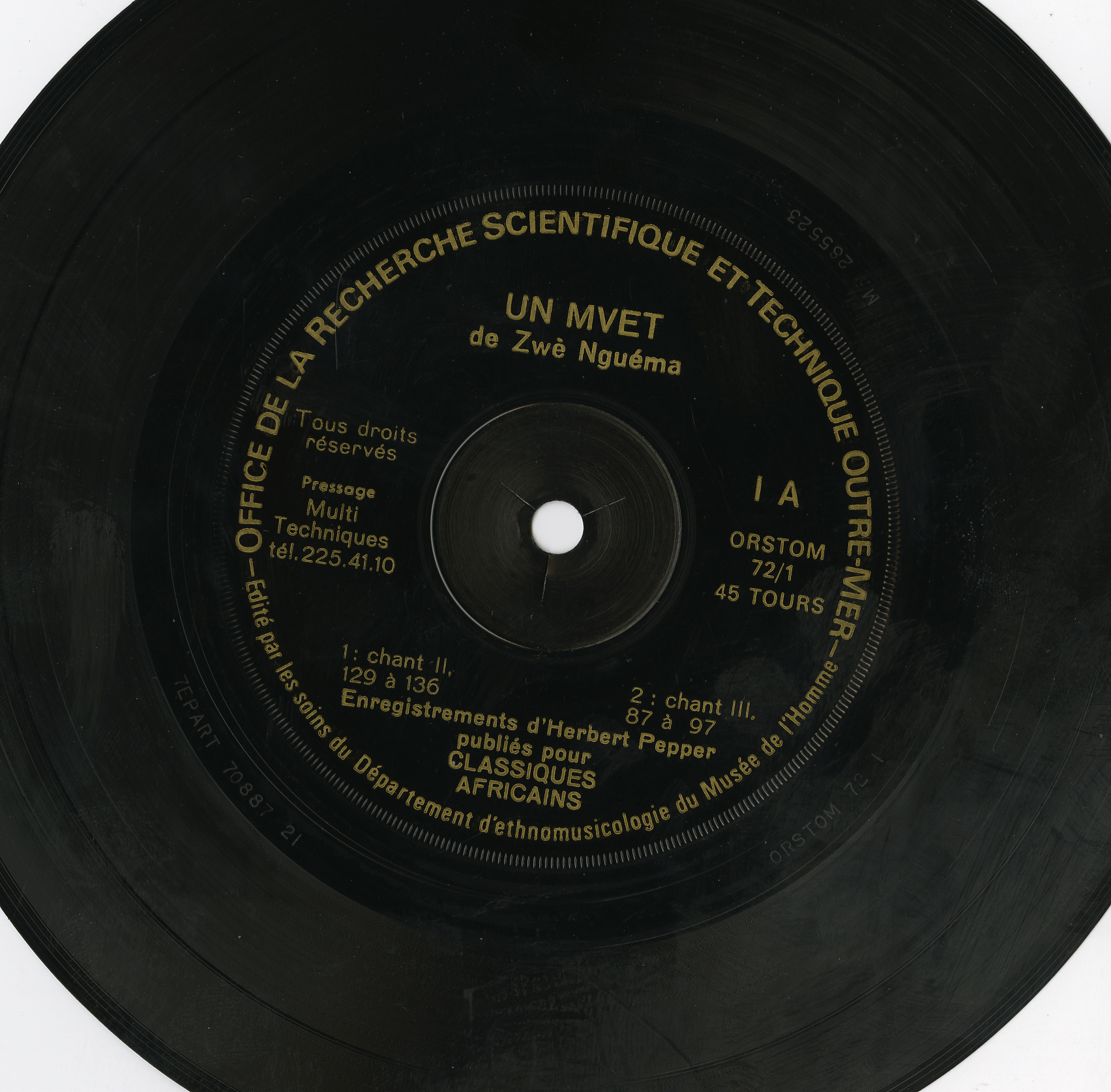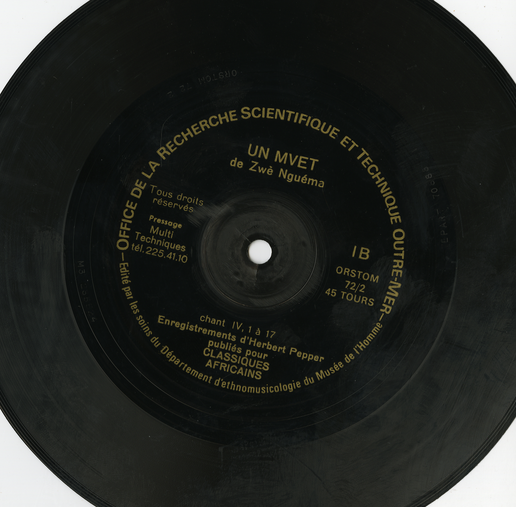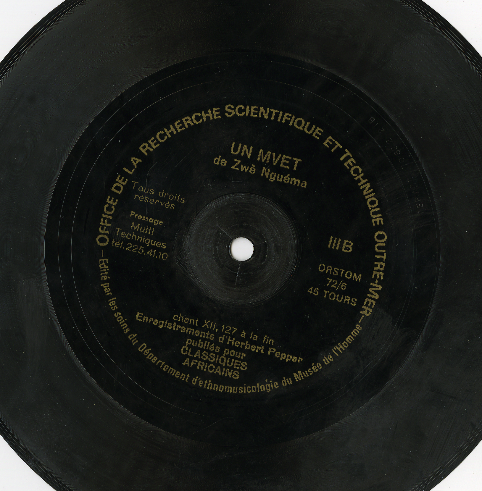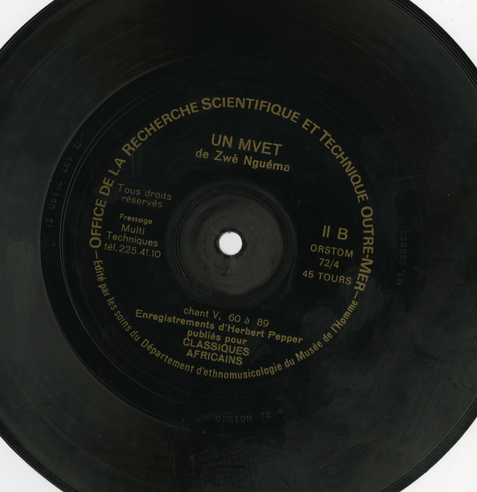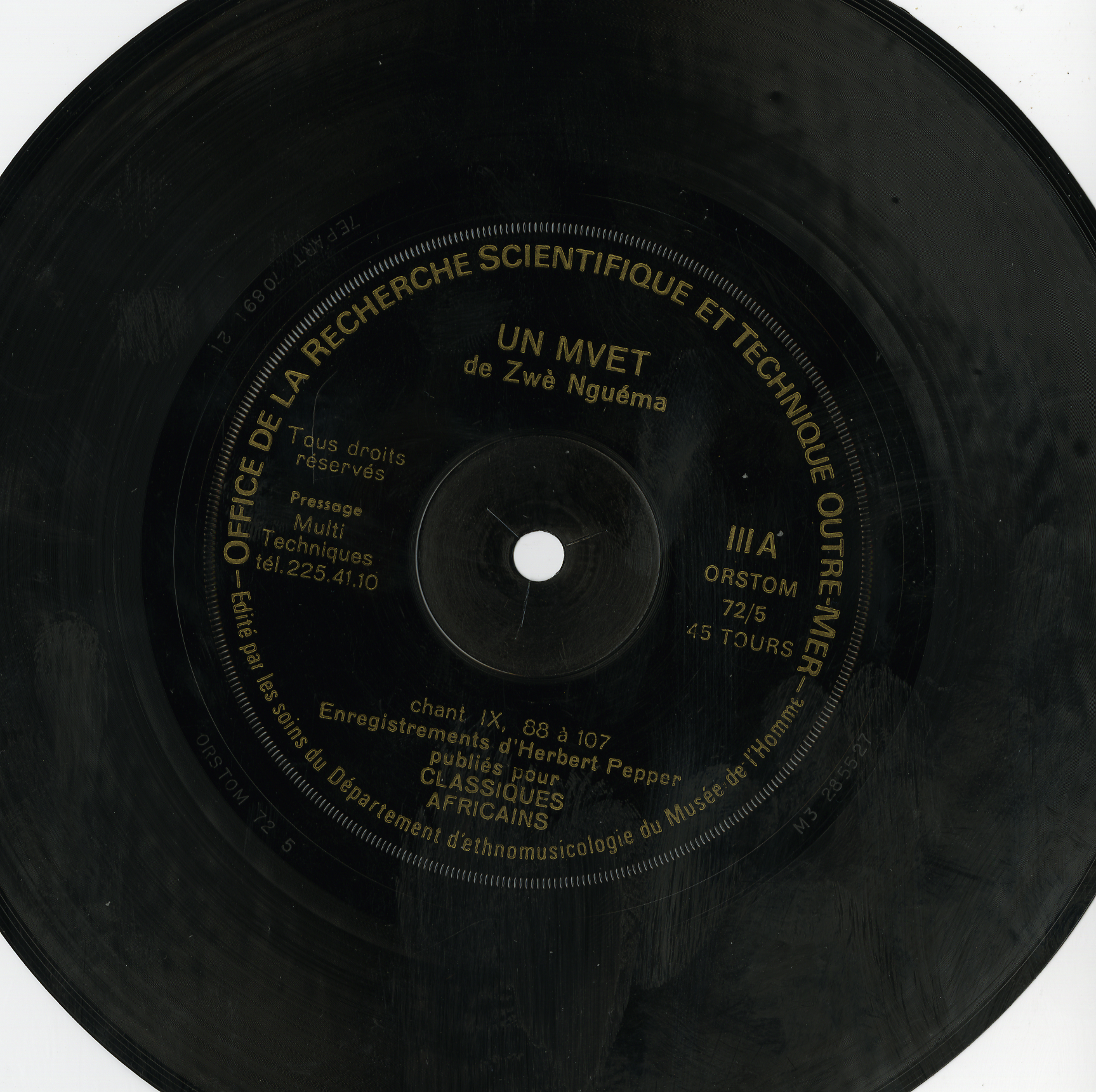 - Enregistrements sonores édités de musique de " mvet de Zwe Nguema", enregistrés lors d'une mission de recherche au Gabon en 1960 par H. Pepper, ethnomusicologue à l'ORSTOM.