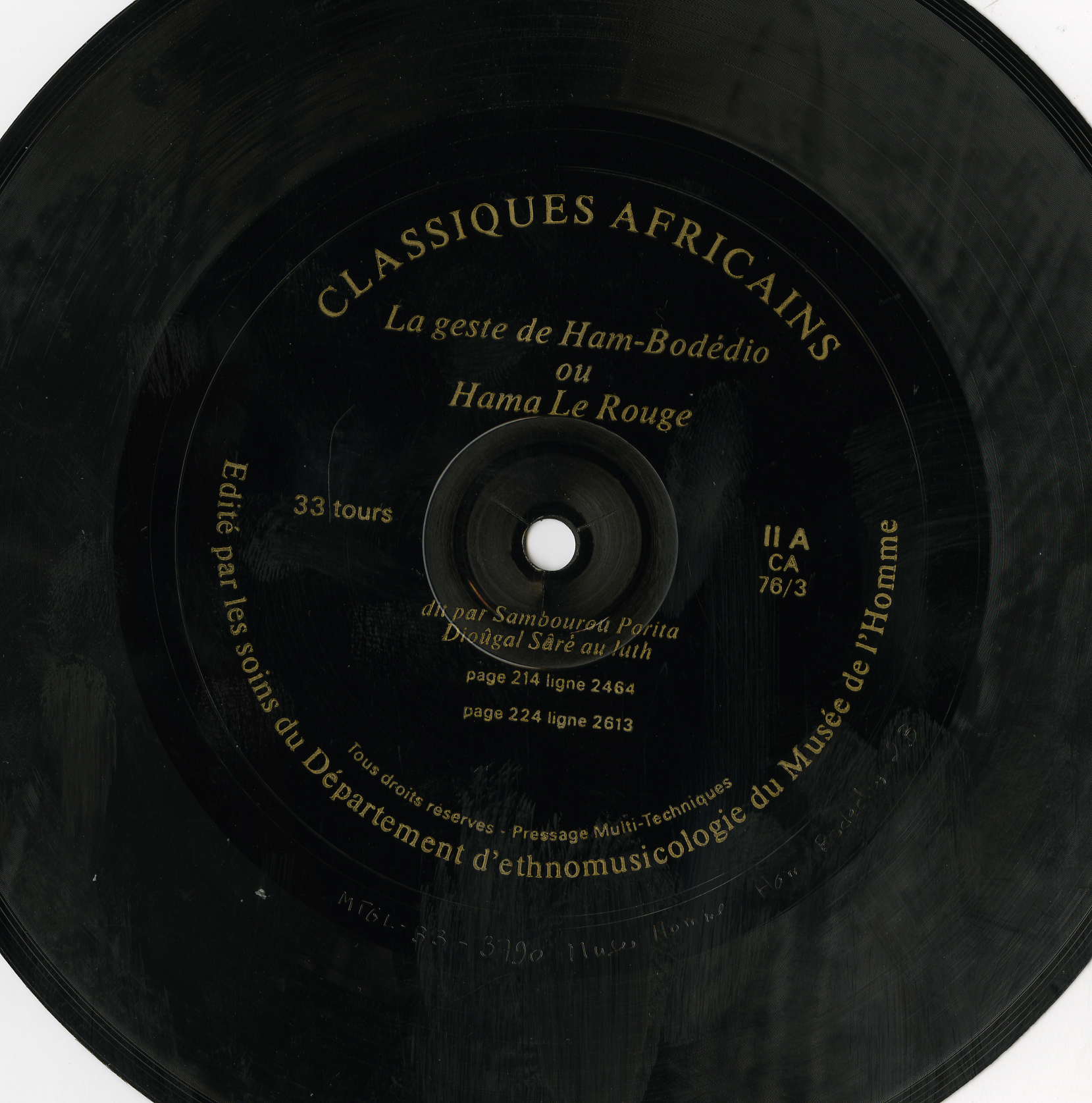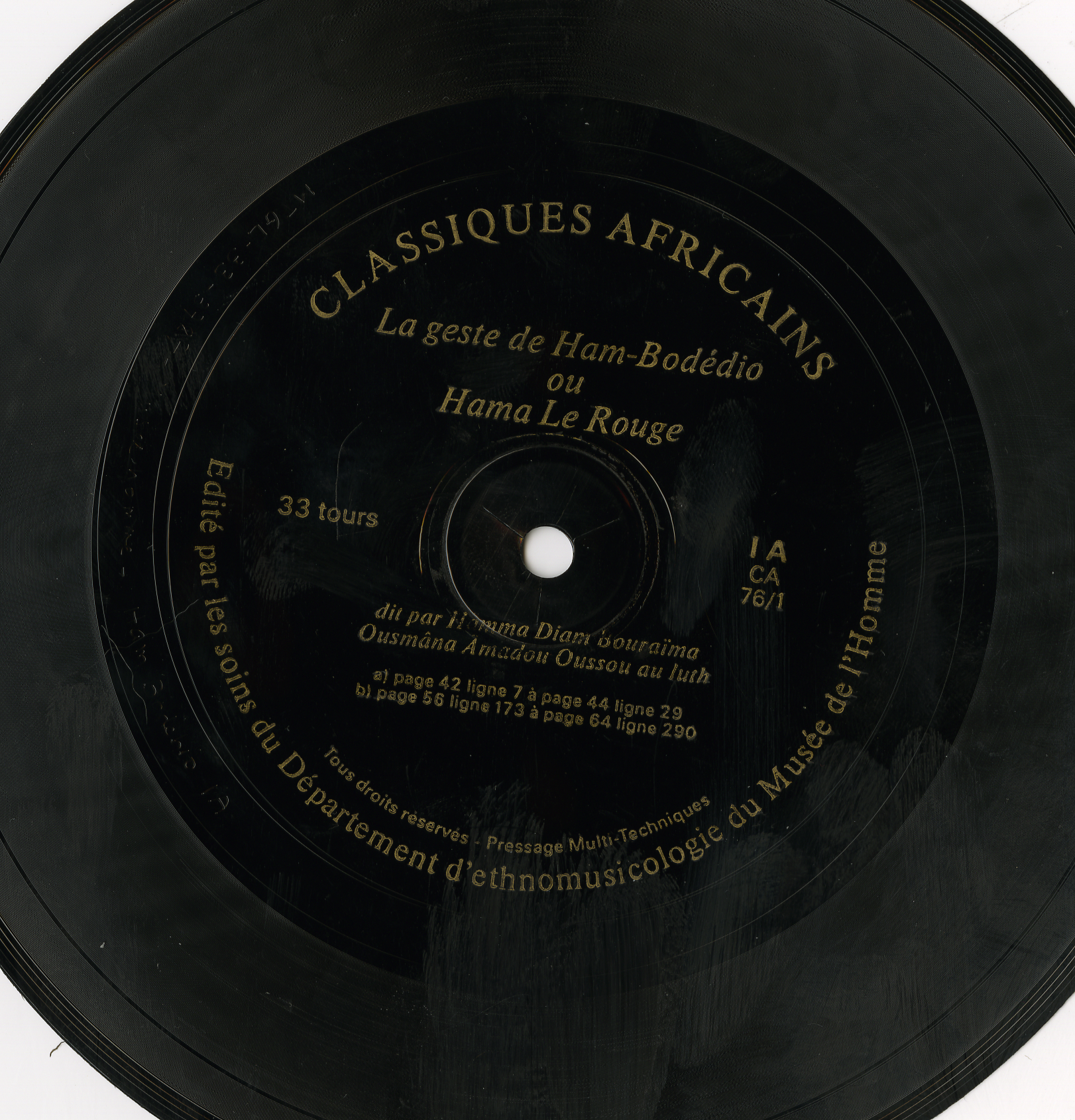 - La geste de Ham-Bodêdio ou Hama le Rouge / traduite et éditée par Christiane Seydou. - Paris : A. Colin, [DL 1977]. - 1 vol. (419 p.) : jaquette ill. ; 26 cm. - 2 disques souples : 33 t ; 17 cm. - (Classiques africains).