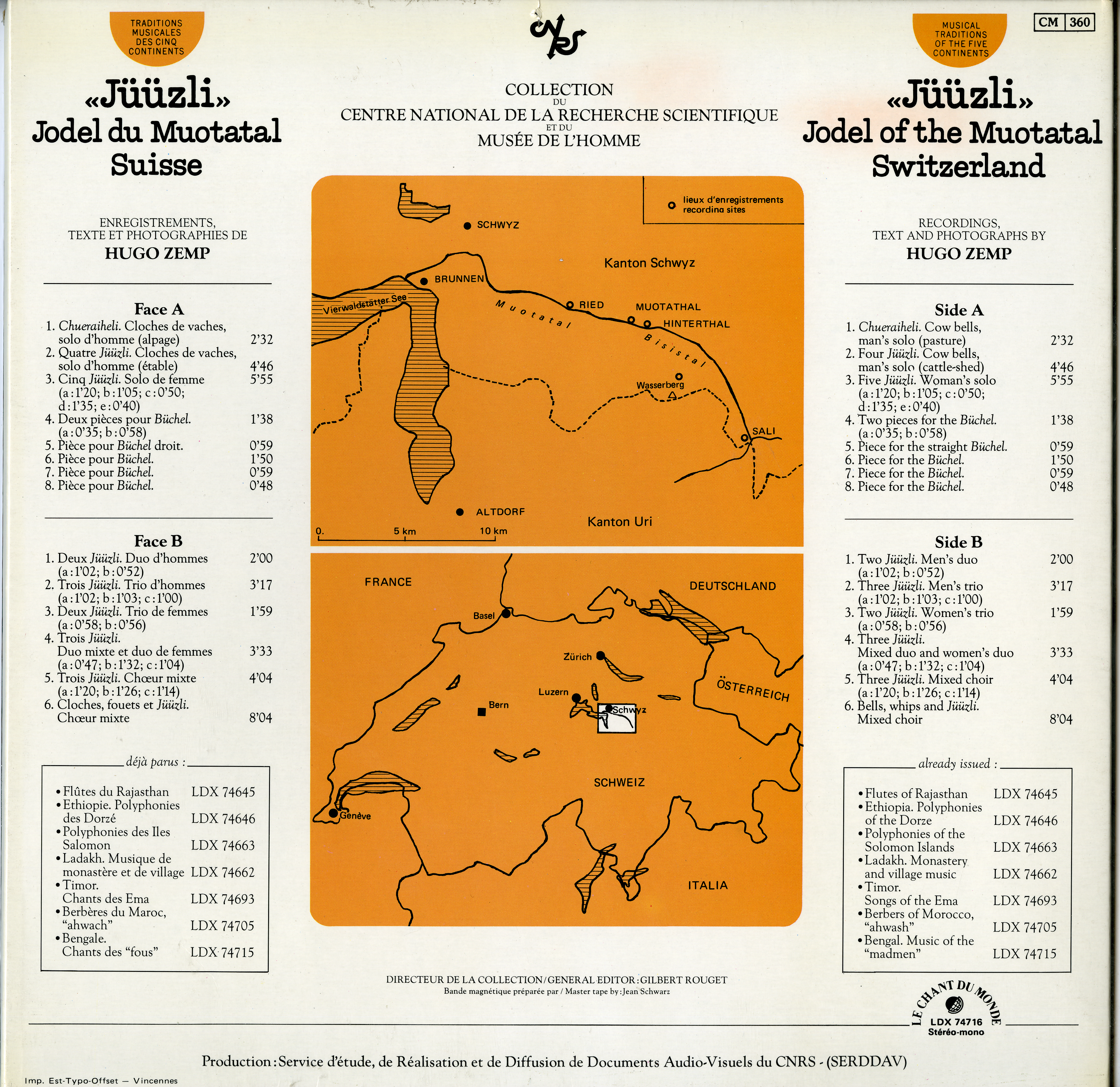 - Enregistrements sonores édités d'Hugo Zemp sur le Jodel du Muotatal en Suisse lors d'un terrain en 1979