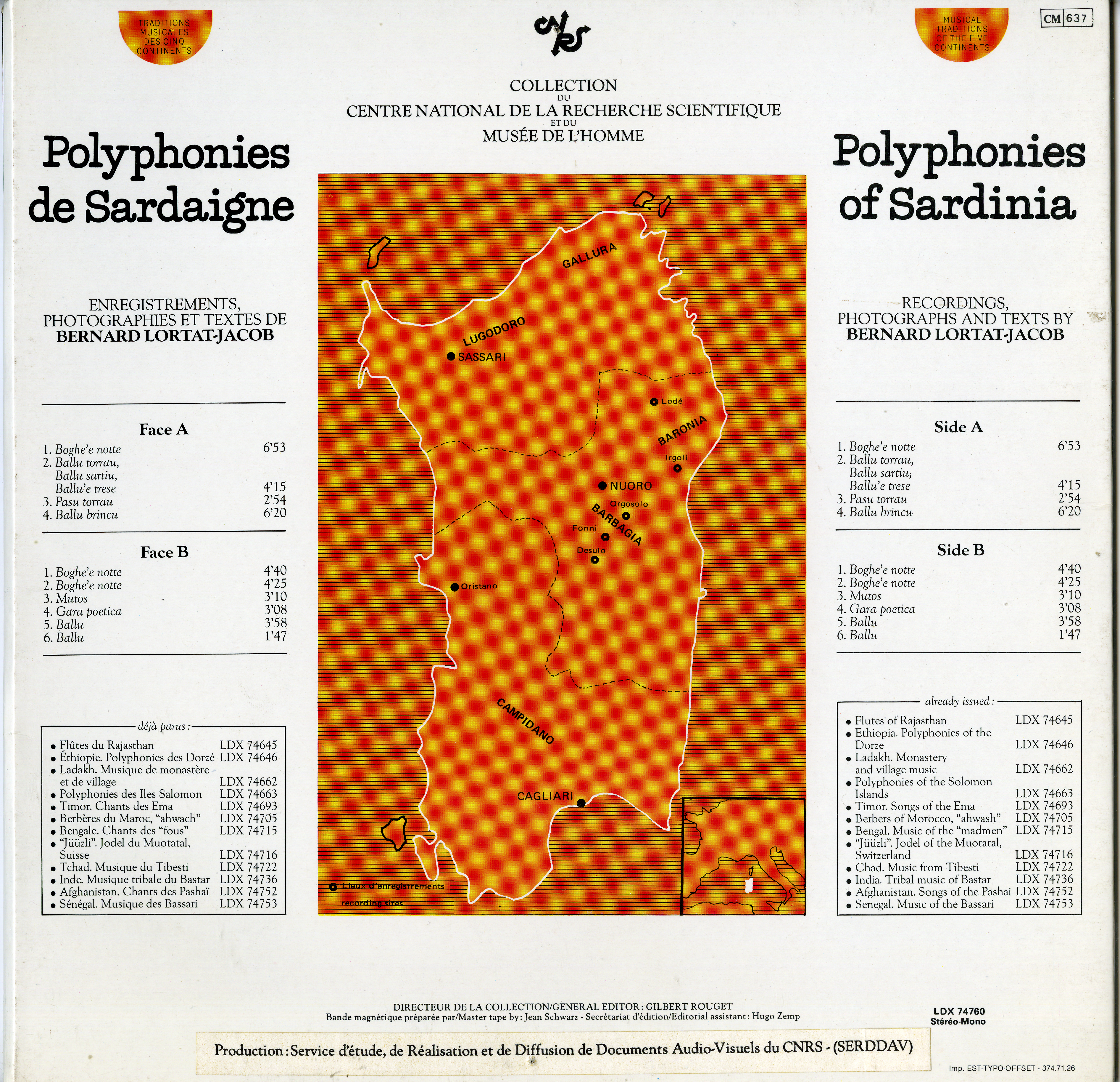 - Lortat-Jacob, Polyphonies et musiques de Sardaigne, France et Italie, 1976-1995