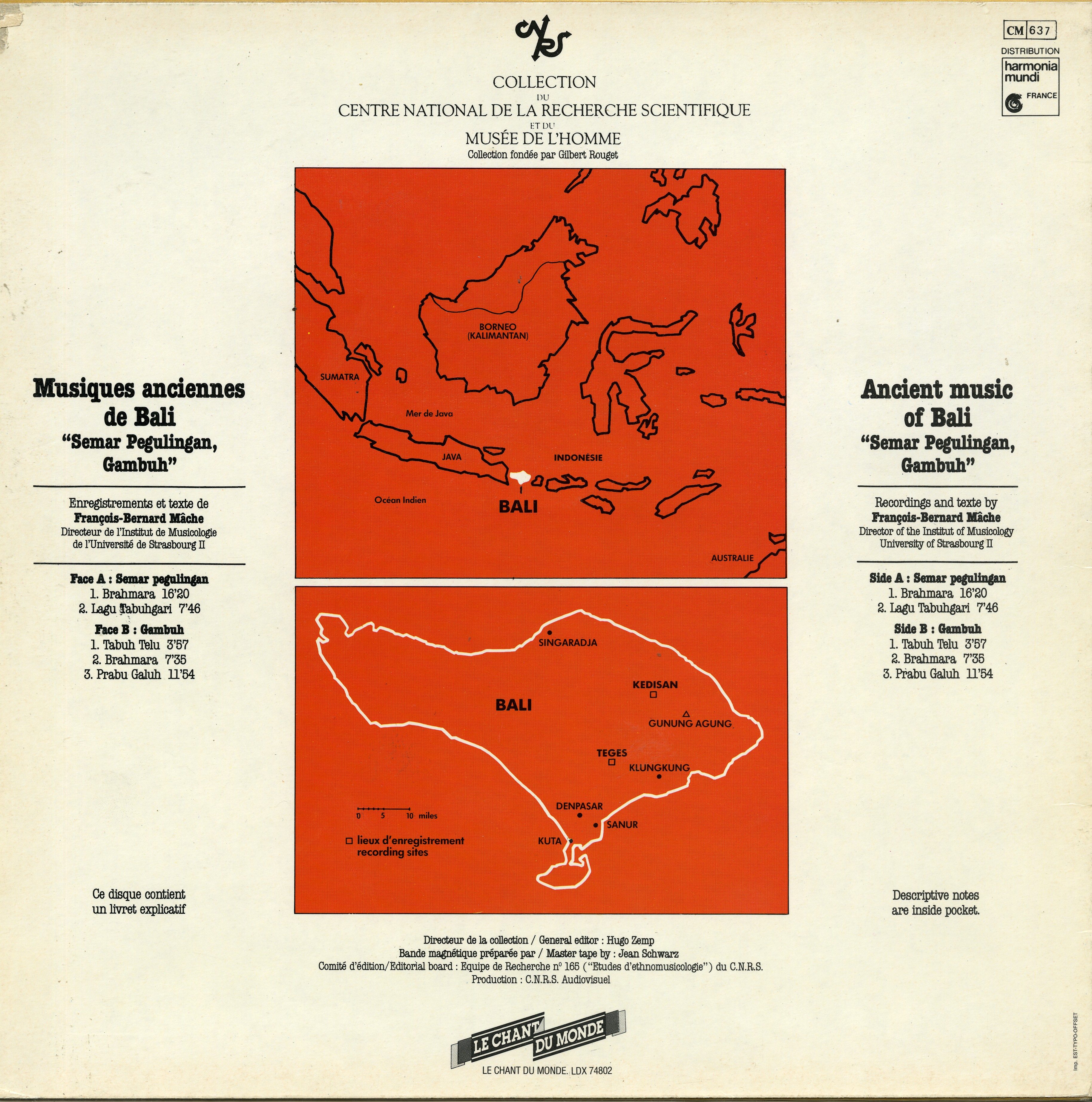 - Enregistrements sonores édités de François-Bernard Mâche sur les musiques anciennes de Bali lors d'un terrain en 1972.