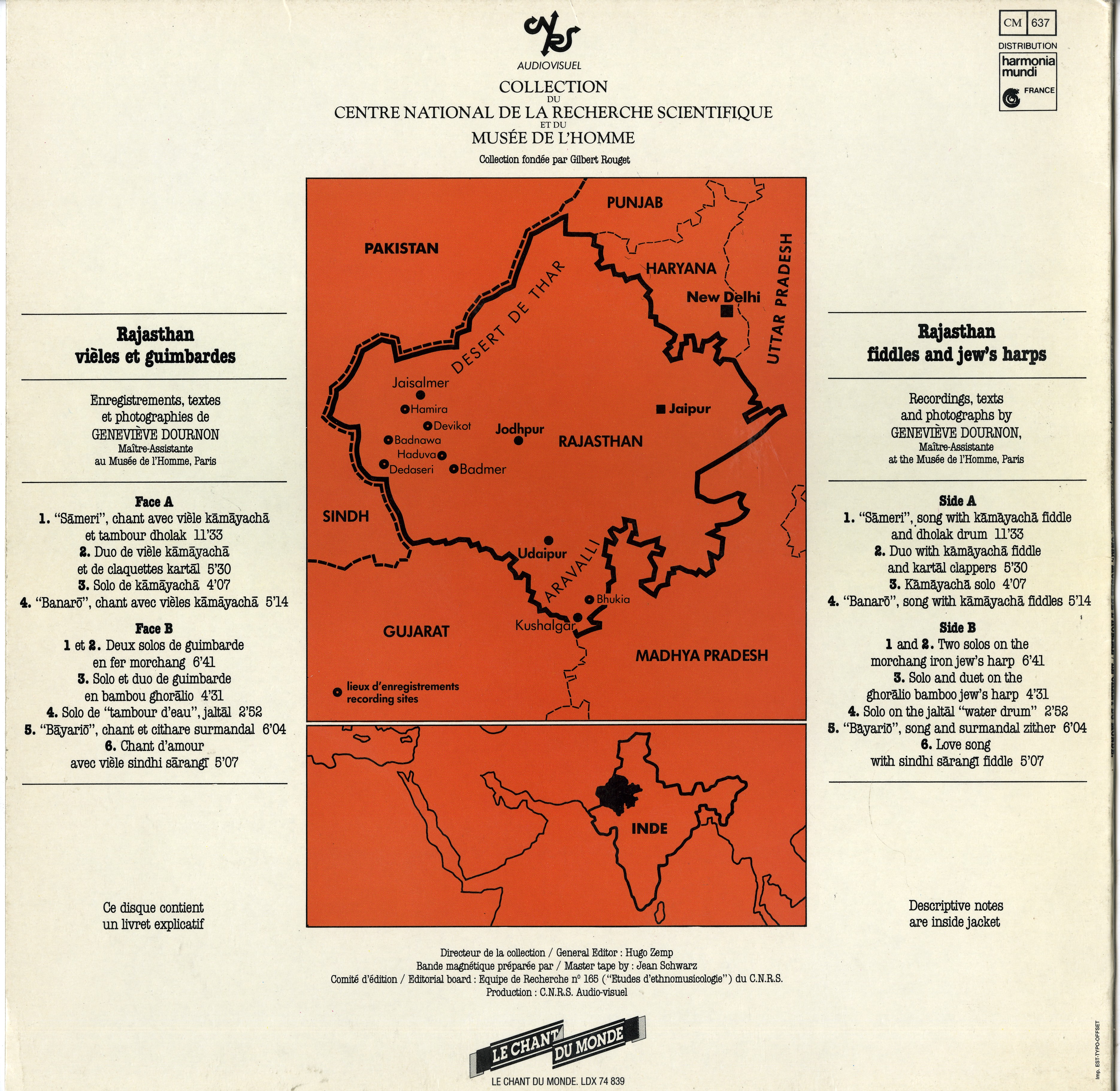 - Enregistrements sonores édités de Geneviève Dournon sur les vièles et Guimbardes du Rajasthan lors d'un terrain en 1976