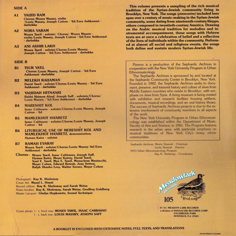 Collection : Pizmon : Syrian-Jewish Religious and Social Song