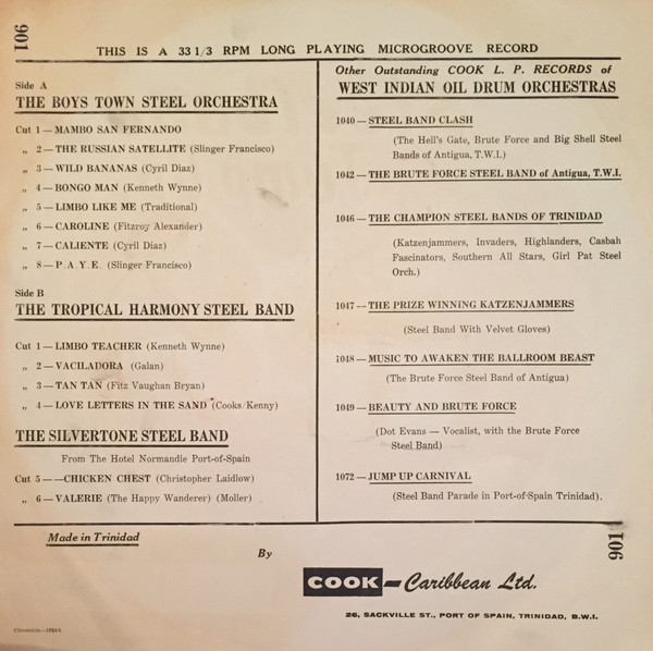 - Musique calypso, album “Steel Band Jump Up” interprété par plusieurs groupes, paru en 1958. [Copie de disques 33 tours de la collection privée de Rémi Joigneaux]