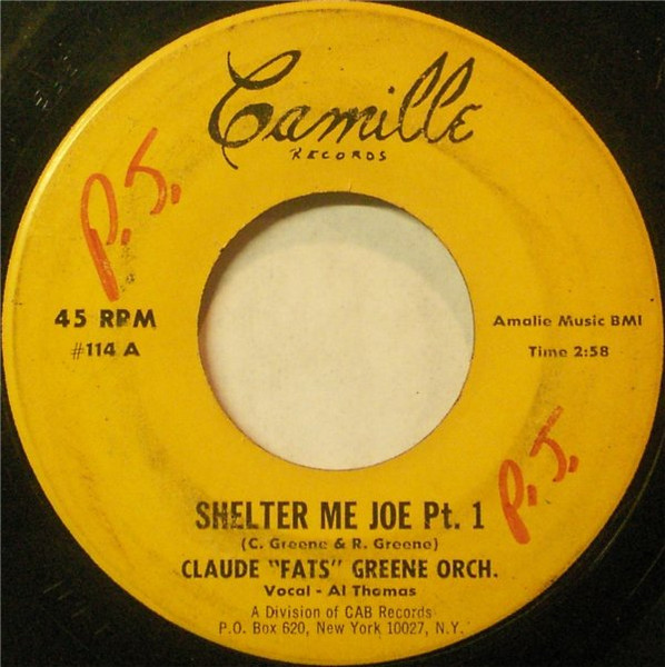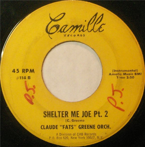 - Claude "Fats" Greene Orchestra [artiste] / Shelter Me Joe Pt. 1 [face A] / Shelter Me Joe Pt. 2 [face B]