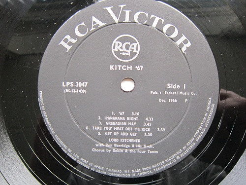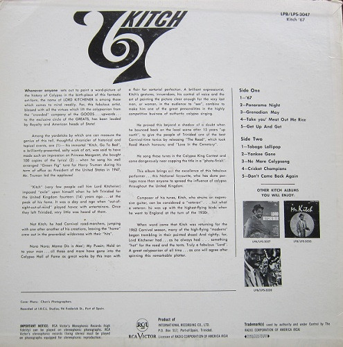 - Musique calypso, album “Kitch 67” interprété par Lord Kitchener, enregistré au Studio IRCL, Trinidad, paru en 1966. [Copie de disques 33 tours de la collection privée de Rémi Joigneaux]