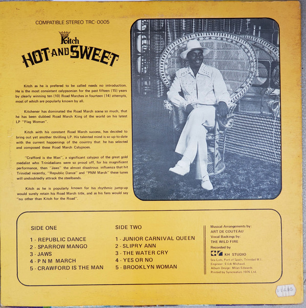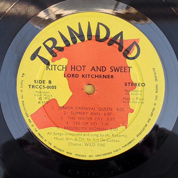 - Musique calypso, album “Hot And Sweet ” interprété par Lord Kitchener, enregistré au KH Studios, Trinidad, paru en 1976. [Copie de disques 33 tours de la collection privée de Rémi Joigneaux]