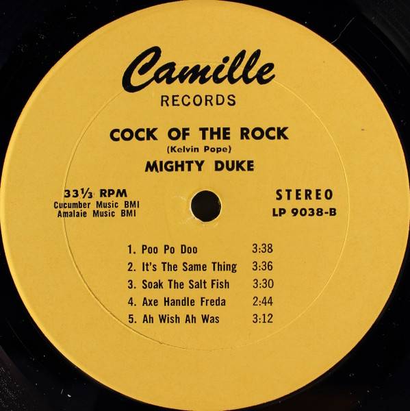 - Musique calypso et soca, album “Cock of the Rock” interprété par Mighty Duke enregistré au KH Studios, Trinidad, paru en 1975. [Copie de disques 33 tours de la collection privée de Rémi Joigneaux]
