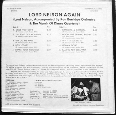- Musique calypso, album “Again” interprété par Lord Nelson enregistré au Broadway Recording Studios, New York, USA, paru en 1974. [Copie de disques 33 tours de la collection privée de Rémi Joigneaux]