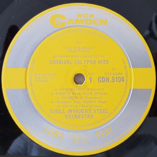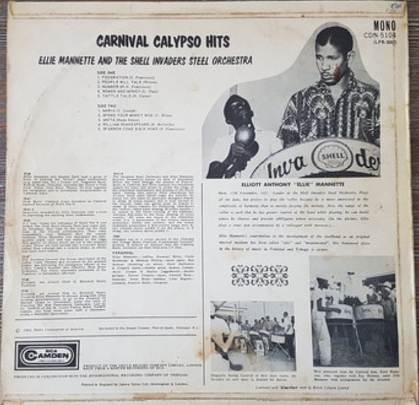 - Musique calypso, album “1962 Carnival Calypso Hits ” interprété par Ellie Mannette And The Shell Invaders Steel Orchestra, enregistré au The Strand Cinema, Trinidad, paru en 1962. [Copie de disques 33 tours de la collection privée de Rémi Joigneaux]