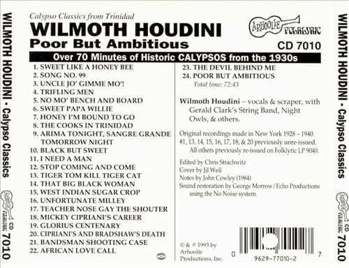 - Wilmoth Houdini, "Calypso Classics from Trinidad"