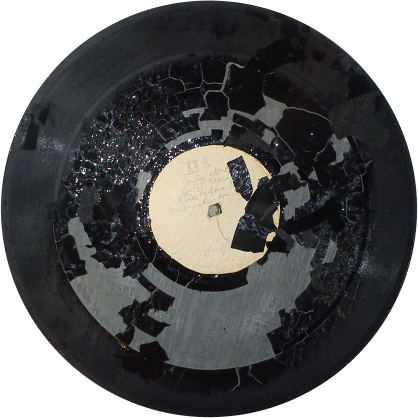 Une vingtaine de disques, boîte non dépouillée (perte de matière, fragilité des disques). Très mauvais état (disques craquelés).
