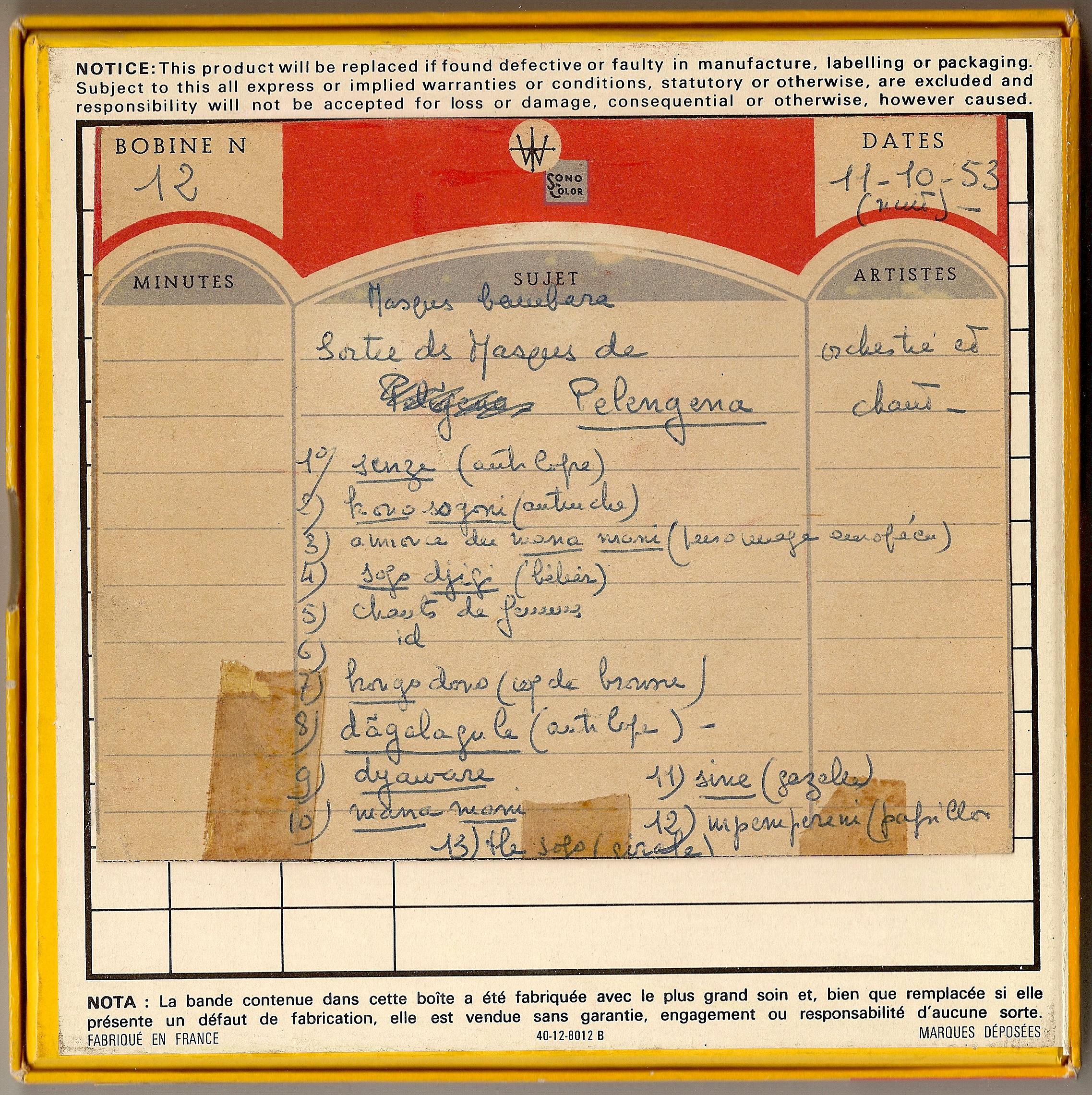 - DT Enreg. Dieterlen (Dogon - Malinké - Bambara) - Bandes magnétiques - Dossier "Dogon" : divers (33 ff.) ; Dossier "Bamabara" : divers (9 ff.) - MNHN