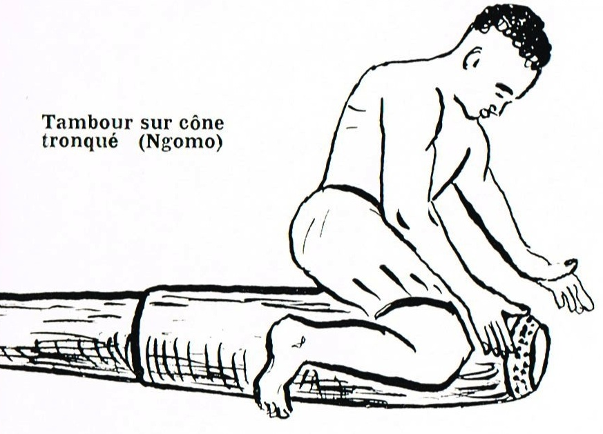 - Rythmes de tambours de danse : NGOMO, tambour horizontal à membrane