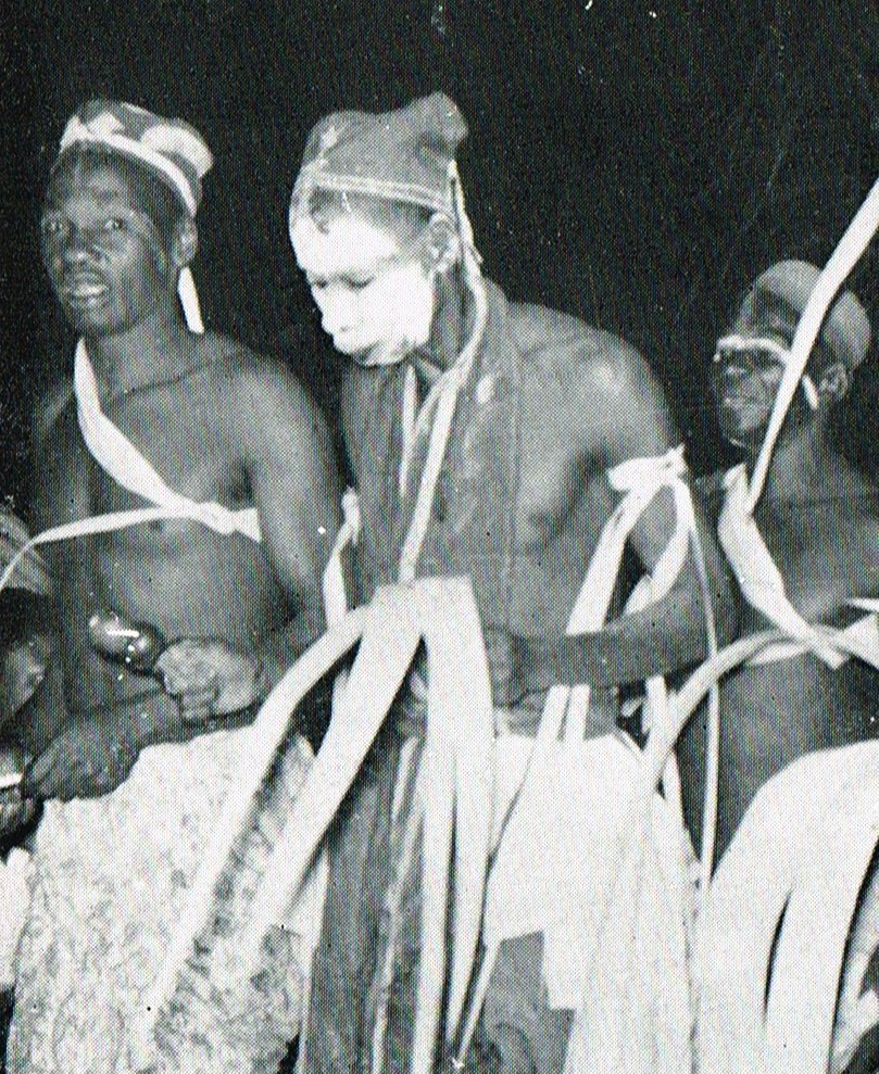 Ici, le prêtre et ses servants se dirigent en une procession à l'autel, en rendant hommage à l'arbre Maboga "arbre soleil", dont l'écorce (Liboga) mastiquée, fournit au Bwitiste sa drogue. - Keywords