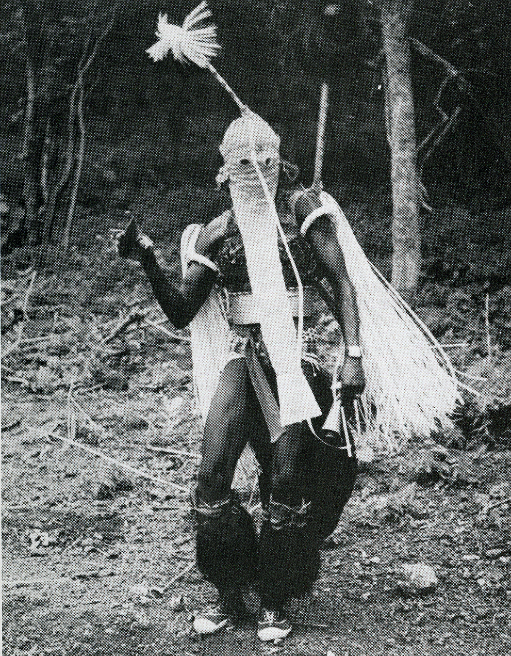 - Esprits nés du fleuve Gambie, vêtus de feuilles et de tissus d'écorces, le corps souvent enduit d'ocre, dissimulant leurs visages aux regards des non-initiés, les masques Bassari participent aux travaux agricoles, aux cérémonies religieuses et aux danses des hommes et des femmes. Leur identité est révélée aux garçons au cours de l'"initiation" à la société des adultes.