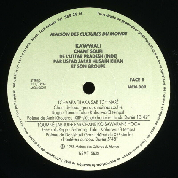 - J. Saadoune, 2022 : Description et métadonnées complétées dans la collection et les items depuis les informations recueillies sur la pochette du disque.