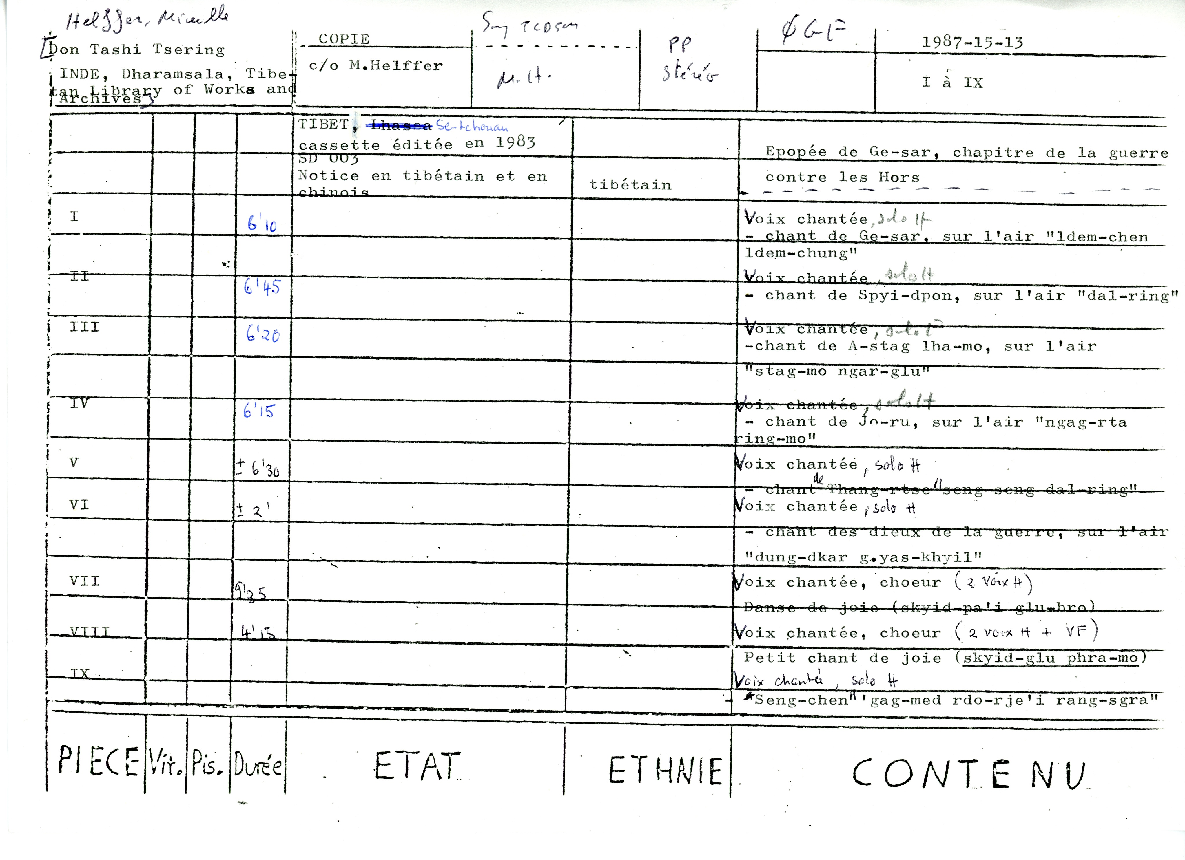 | 1 | Voix chantée : femme | Sgrol-ma lha-mtsho |