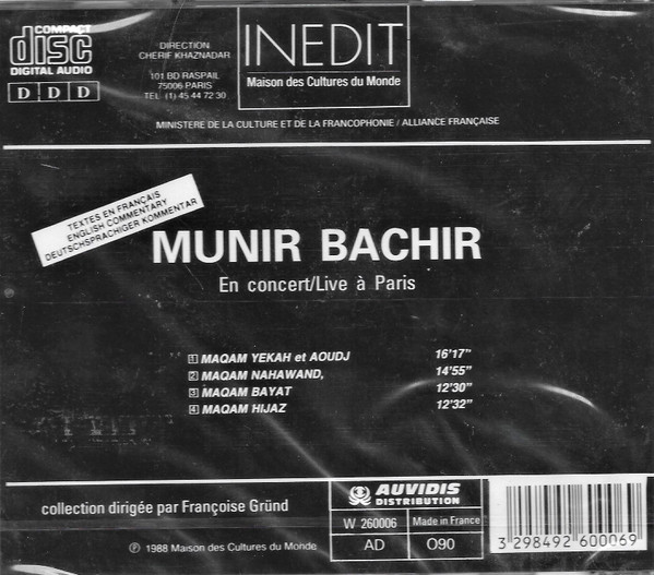Fidèle à la lettre et à l'esprit de la musique arabe traditionnelle, Munir Bachir improvise toutes ses interprétations à partir de bases on ne peut plus authentiques. Créateur autant qu'interprète, sa musique évolue en permanence sans jamais se répéter.
