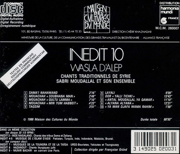 J. Saadoune, 2022 : Description et métadonnées complétées dans la collection et les items depuis les informations recueillies sur le livret du disque. - Last modification