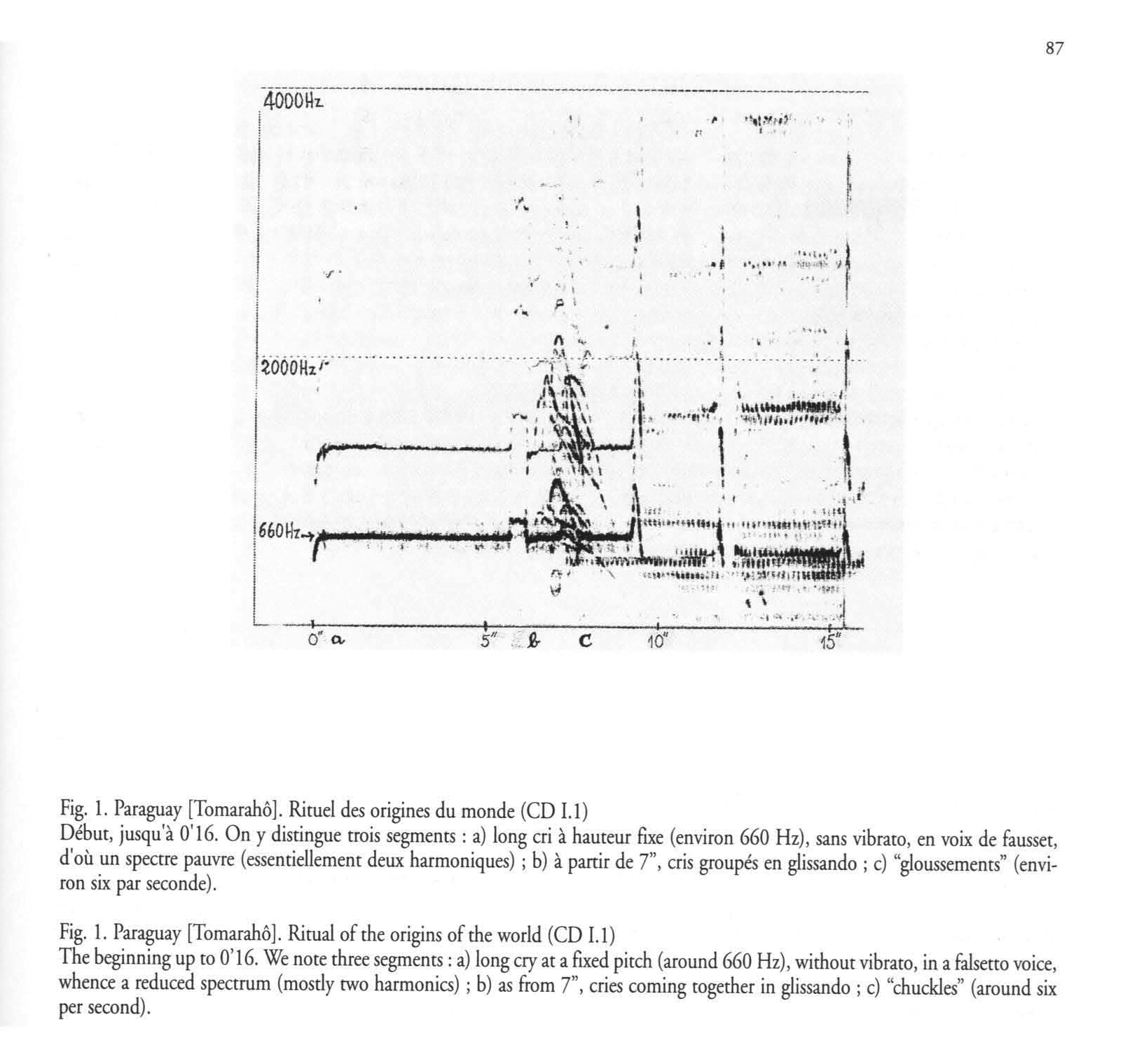 After a presentation of its different constituents, the ensemble comes together on a rhythmical base, established by rattles and by a set of panpipe with two tubes. See figure 1 for a sonagram of part of this item."