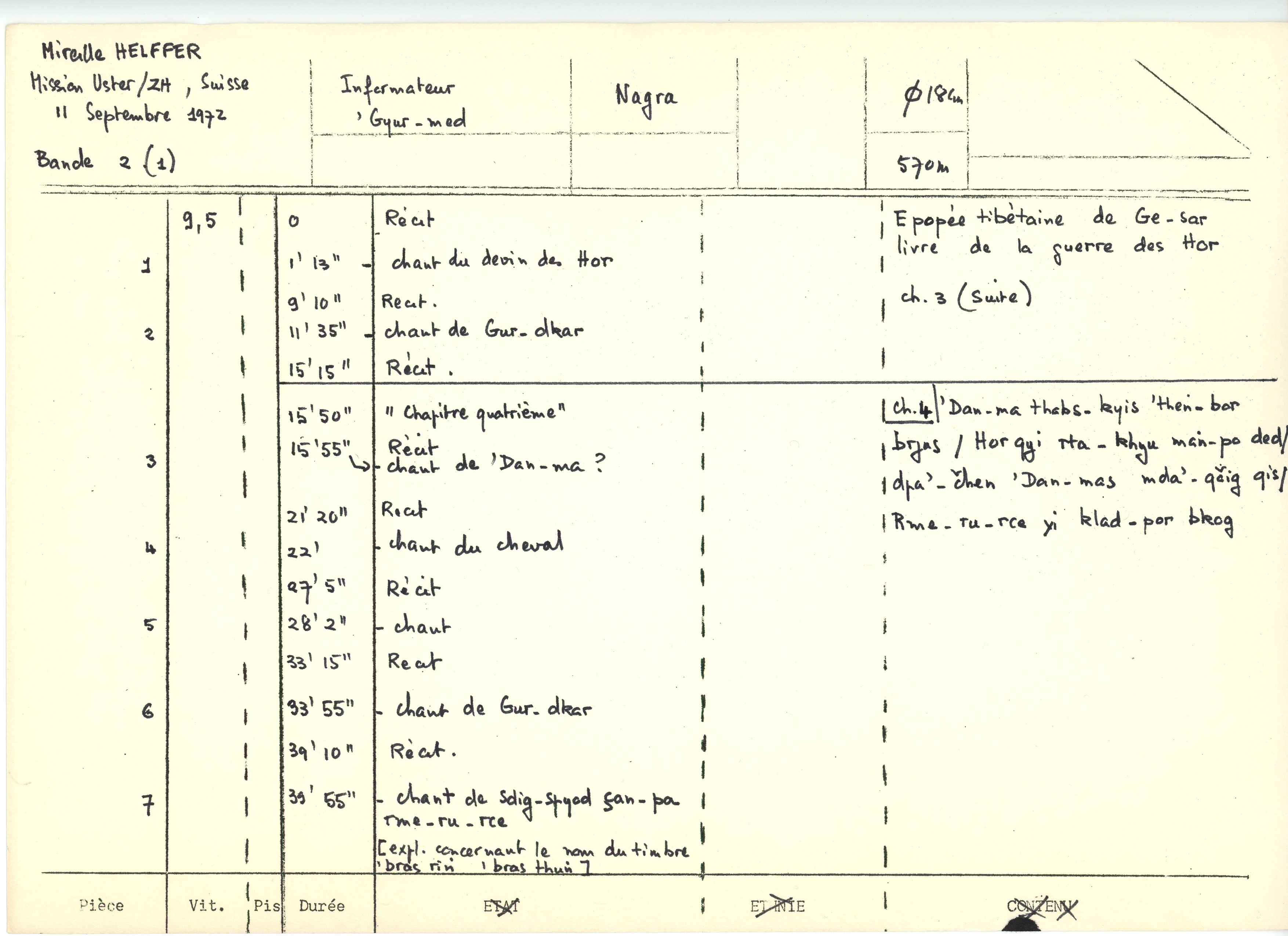 - Pour les noms de personnages et les noms d'airs: cf. la thèse de M. Helffer, " Les chants dans l'épopée tibétaine de Ge-sar"