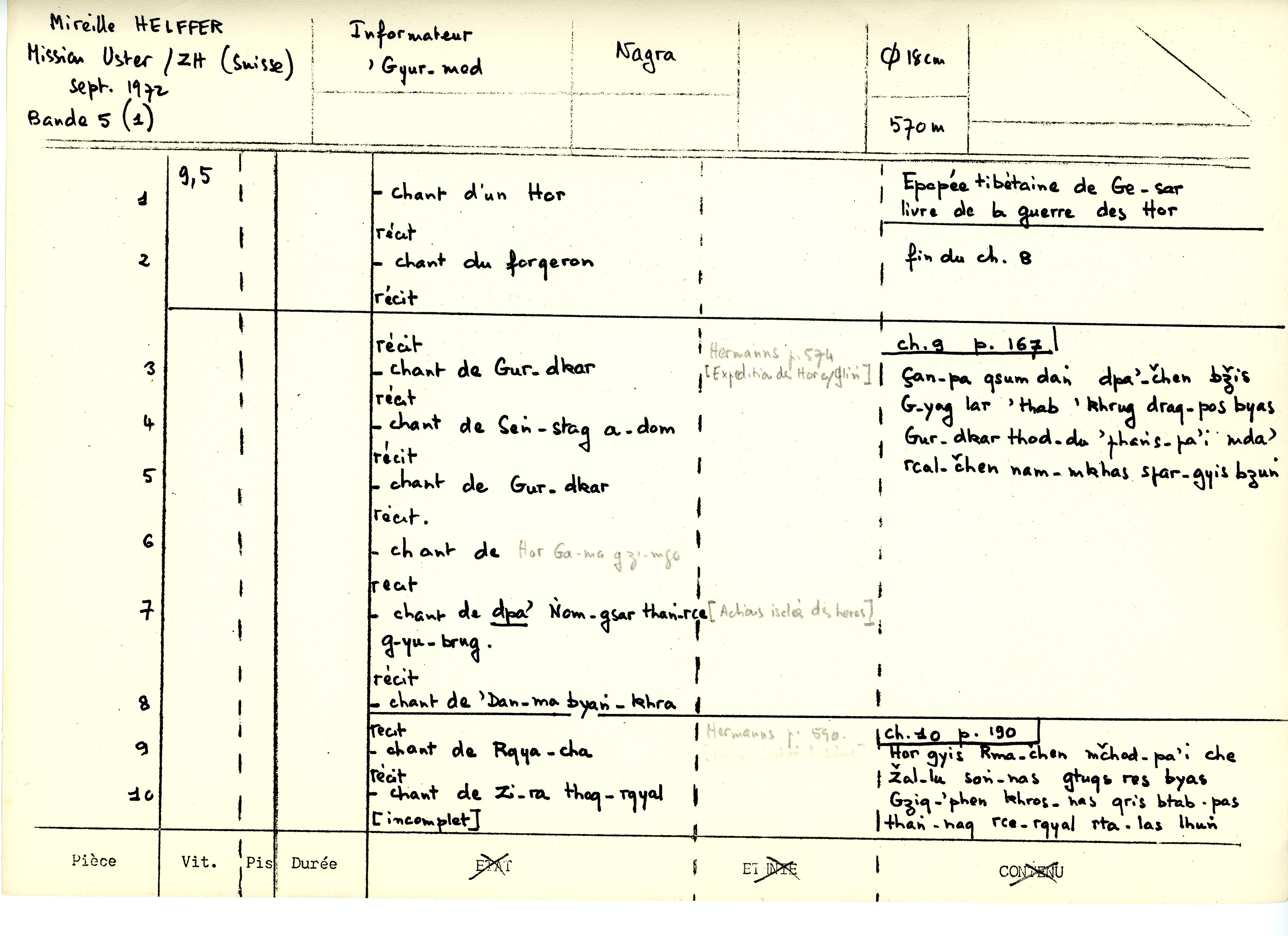 - Pour les noms de personnages et les noms d'airs: cf. la thèse de M. Helffer, " Les chants dans l'épopée tibétaine de Ge-sar"