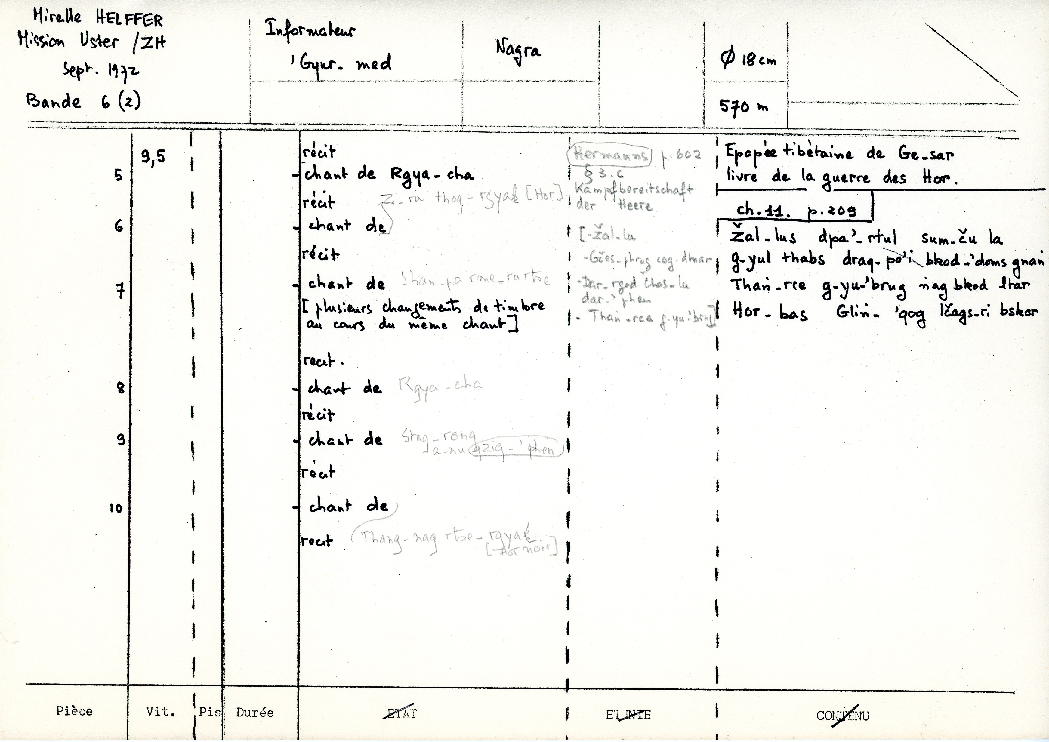- Pour les noms de personnages et les noms d'airs: cf. la thèse de M. Helffer, " Les chants dans l'épopée tibétaine de Ge-sar"