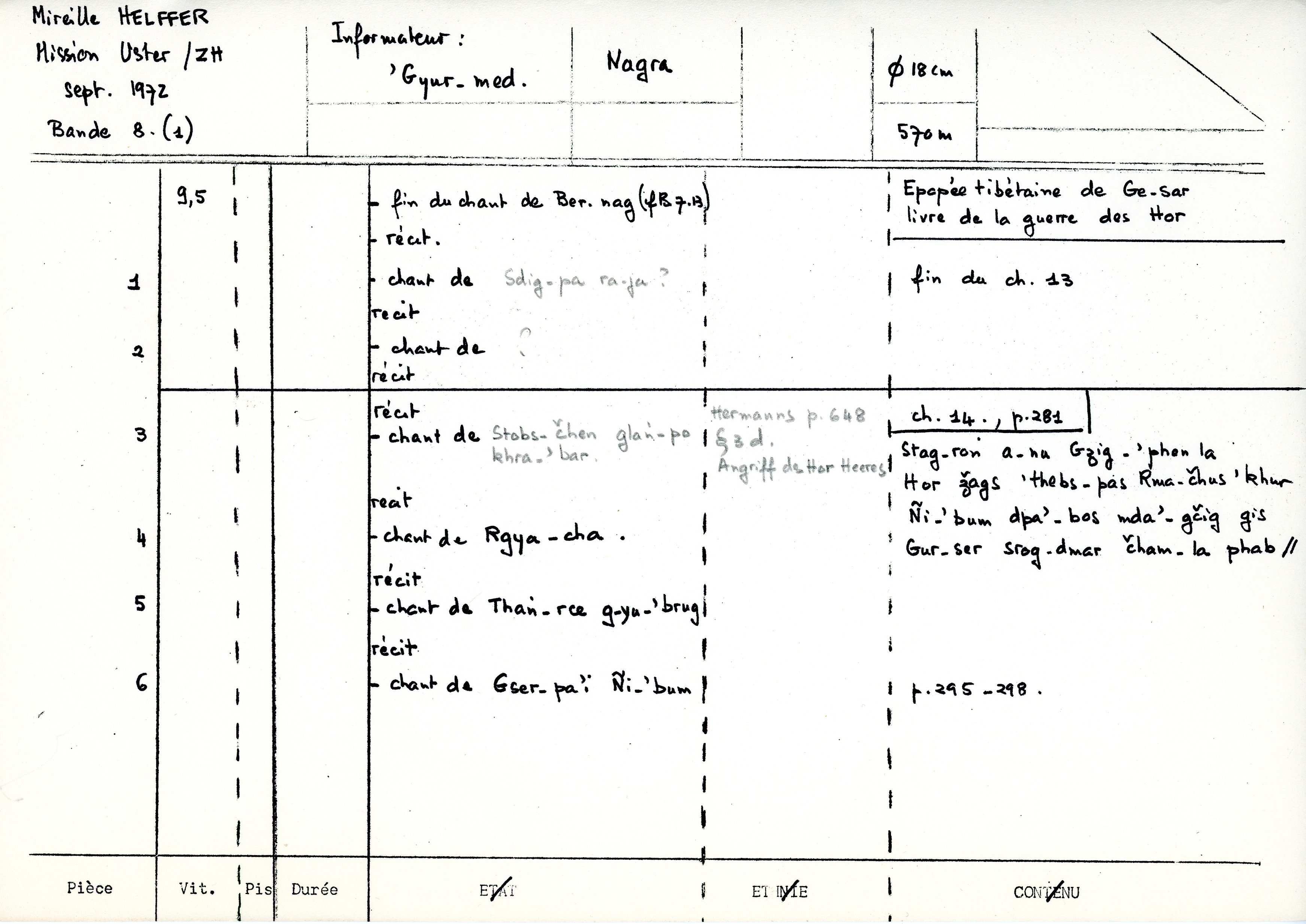 - Pour les noms de personnages et les noms d'airs: cf. la thèse de M. Helffer, " Les chants dans l'épopée tibétaine de Ge-sar"