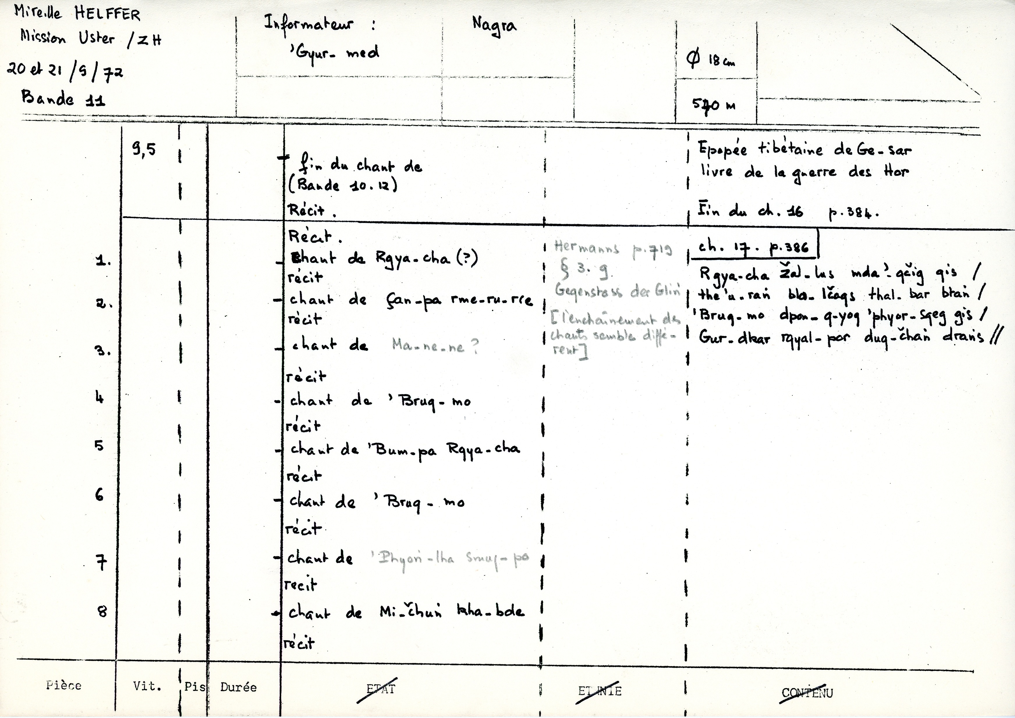 - Pour les noms de personnages et les noms d'airs: cf. la thèse de M. Helffer, " Les chants dans l'épopée tibétaine de Ge-sar"