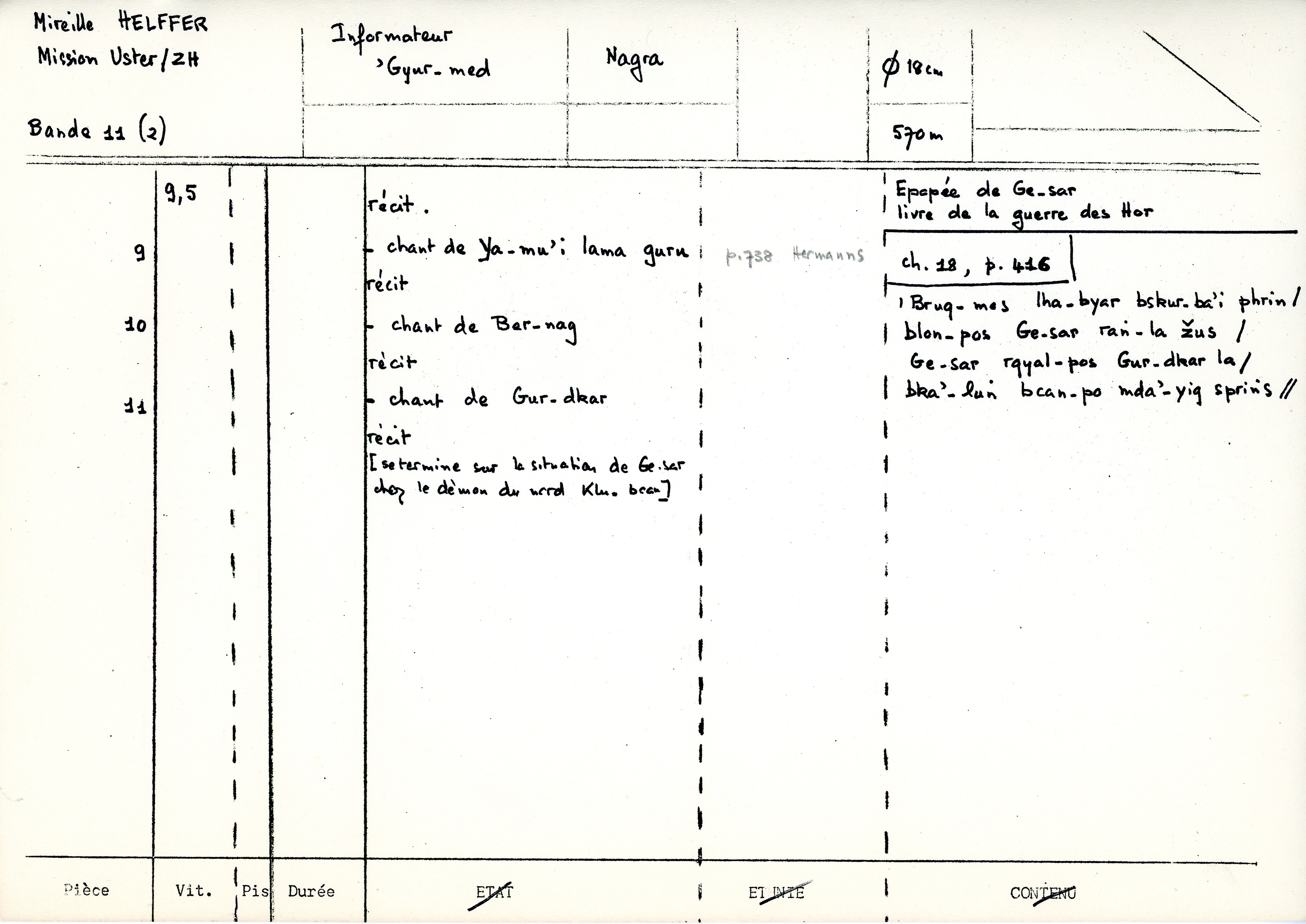 - Pour les noms de personnages et les noms d'airs: cf. la thèse de M. Helffer, " Les chants dans l'épopée tibétaine de Ge-sar"
