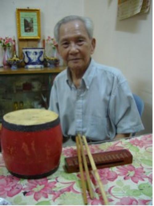 - Le vieux joueur de tambour To Long à Hô Chi Minh-ville connaît ses chants très bien ! Le chant, la partie de planchette à percussion phach et le tambour... Il exécute ici le tout pour le prélude vocal "Muou : Non xanh xanh".