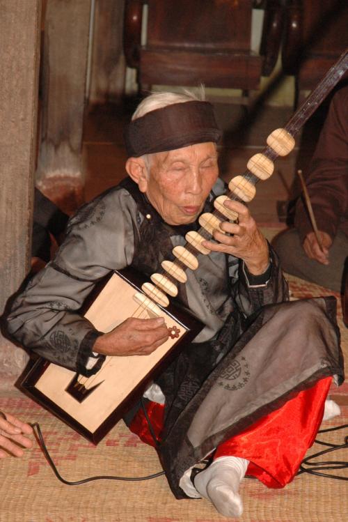 - Le vieux luthiste Nguyen The Hôi du village de Lô Khê explique les techniques ornementales emblématiques du jeu du luth dan day dans le Ca trù.