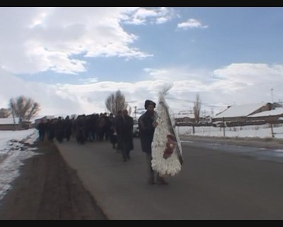 - Document 16 : Sur le chemin du cimetière, hormis le bruit des pas sur la neige gelée, on n’entend plus que les qewl récités par şêx Gno et les pleurs des femmes à l’arrière.