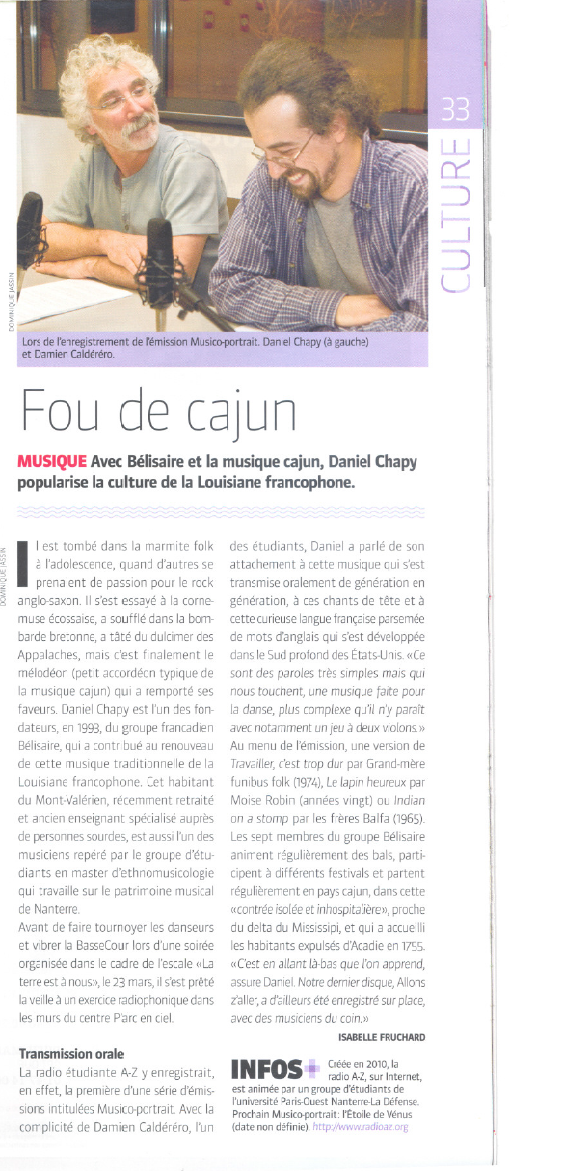 - Musicien nanterrien : Daniel Chapy (Louisiane, Cajun)